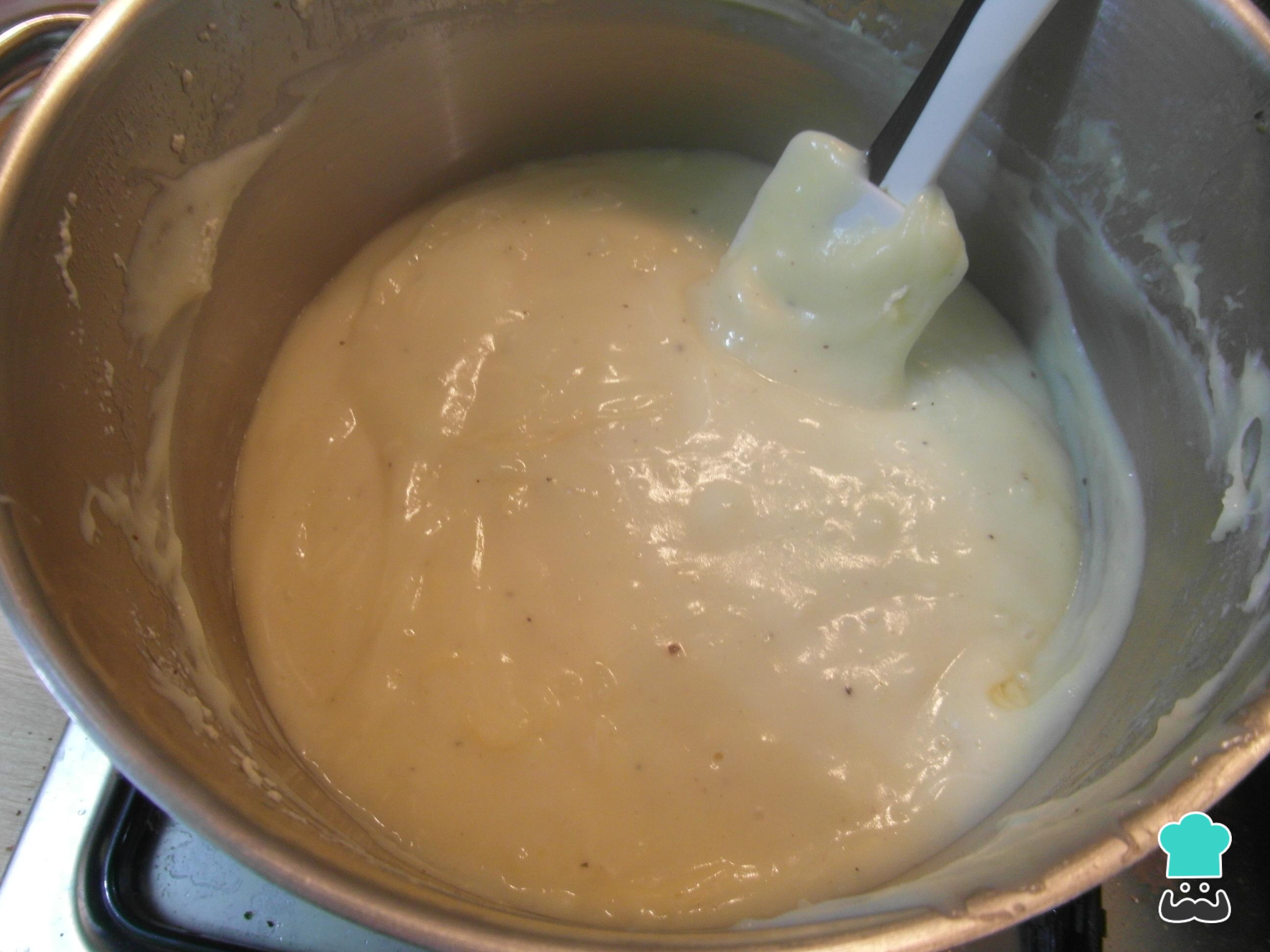 Misture bem para integrar tudo e deixe o molho de mostarda aquecer em fogo suave, mexendo sempre.
