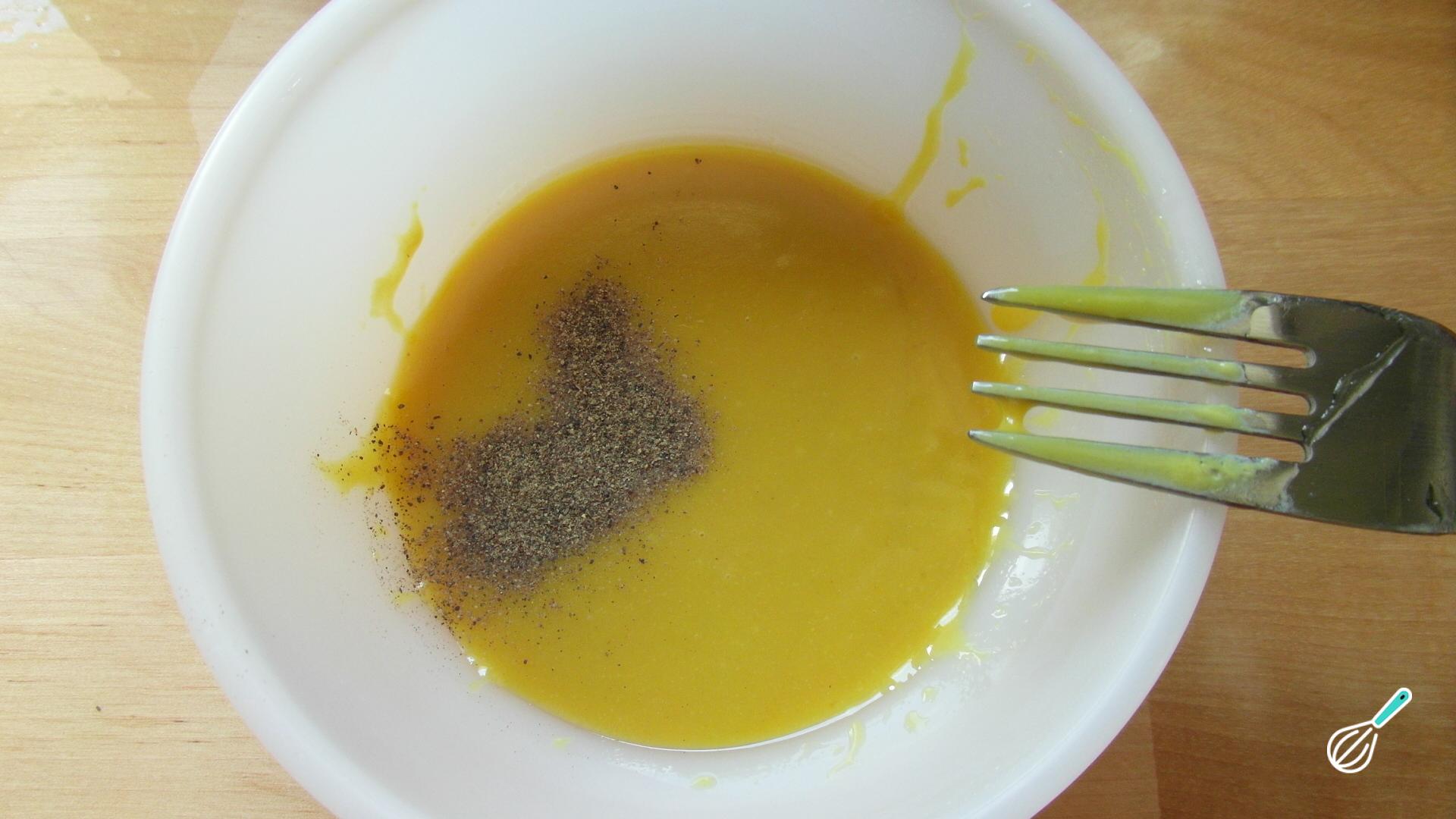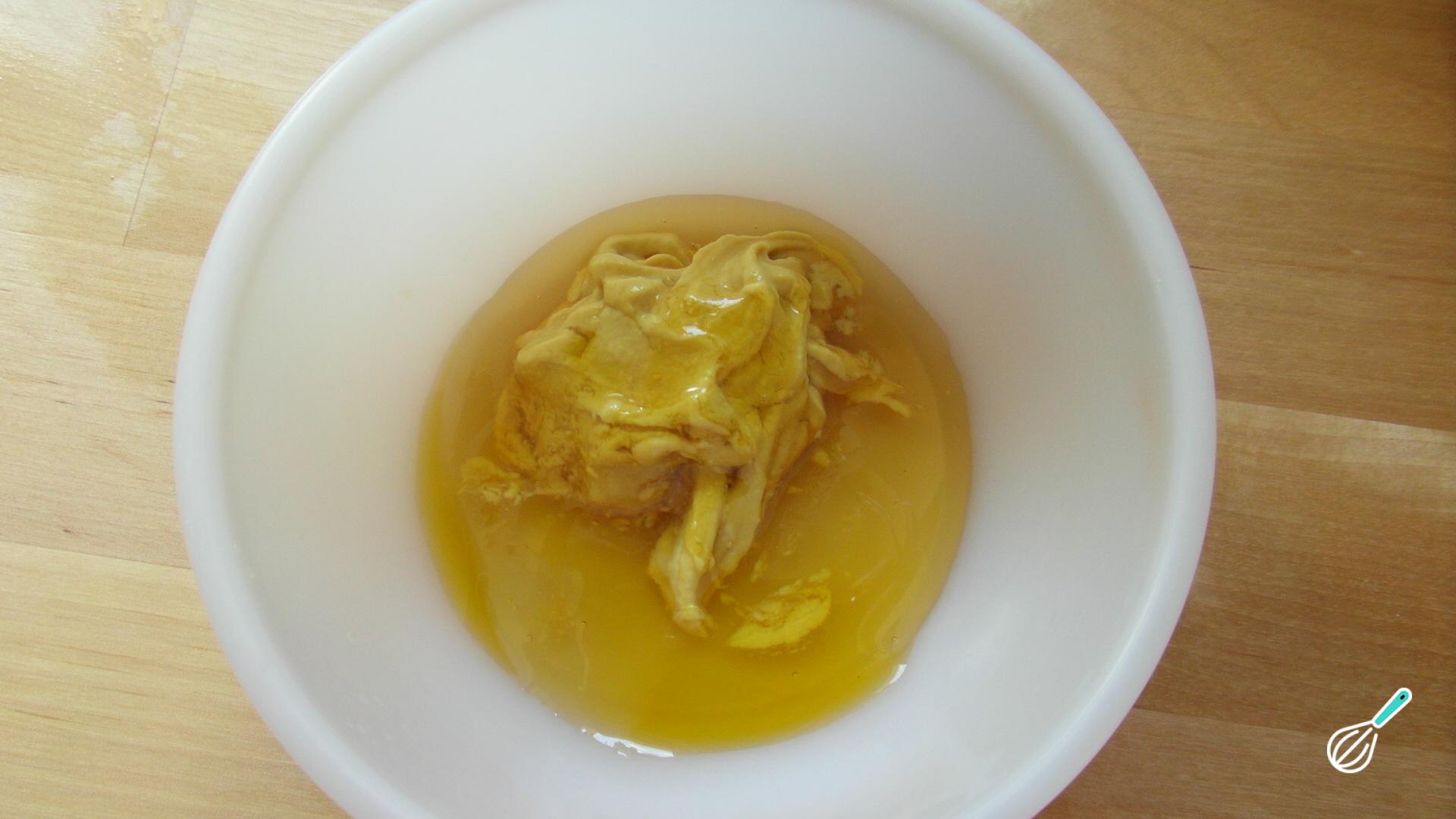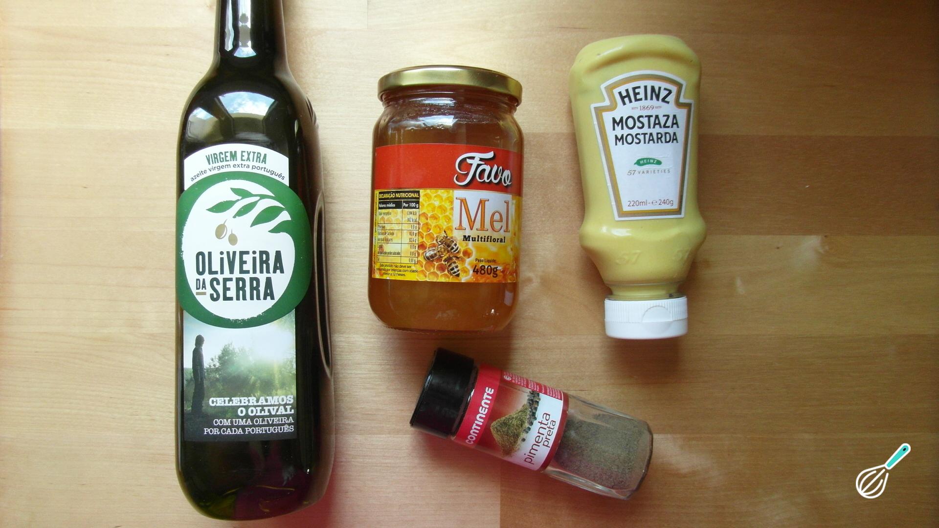 Numa tigela, e com a ajuda de um garfo ou batedor de claras, misture bem a mostarda com o mel.
