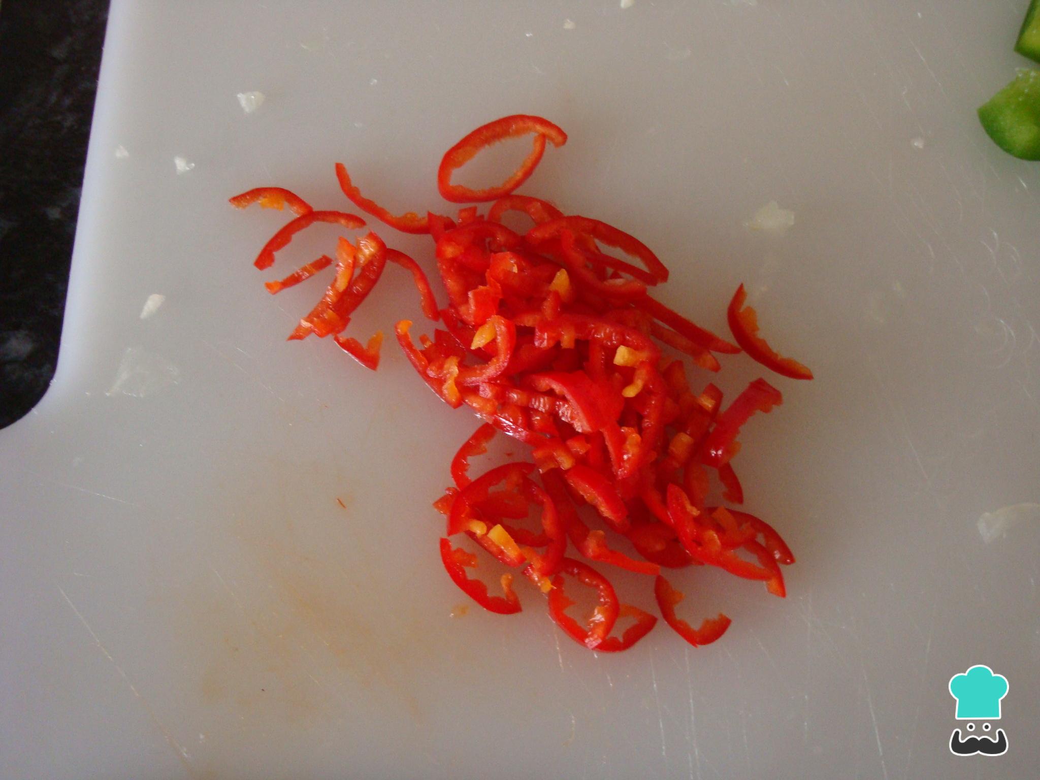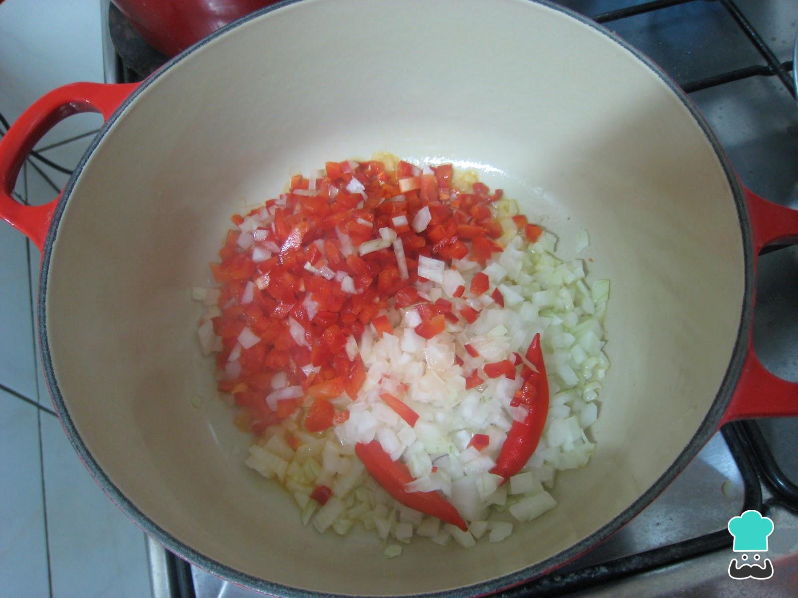 Refogue a mistura por 5 minutos em fogo baixo. De seguida, acrescente a água e mantenha em fogo baixo até a água evaporar. Quando estiver quase evaporada, retire do fogo e deixe o molho de pimenta esfriar.