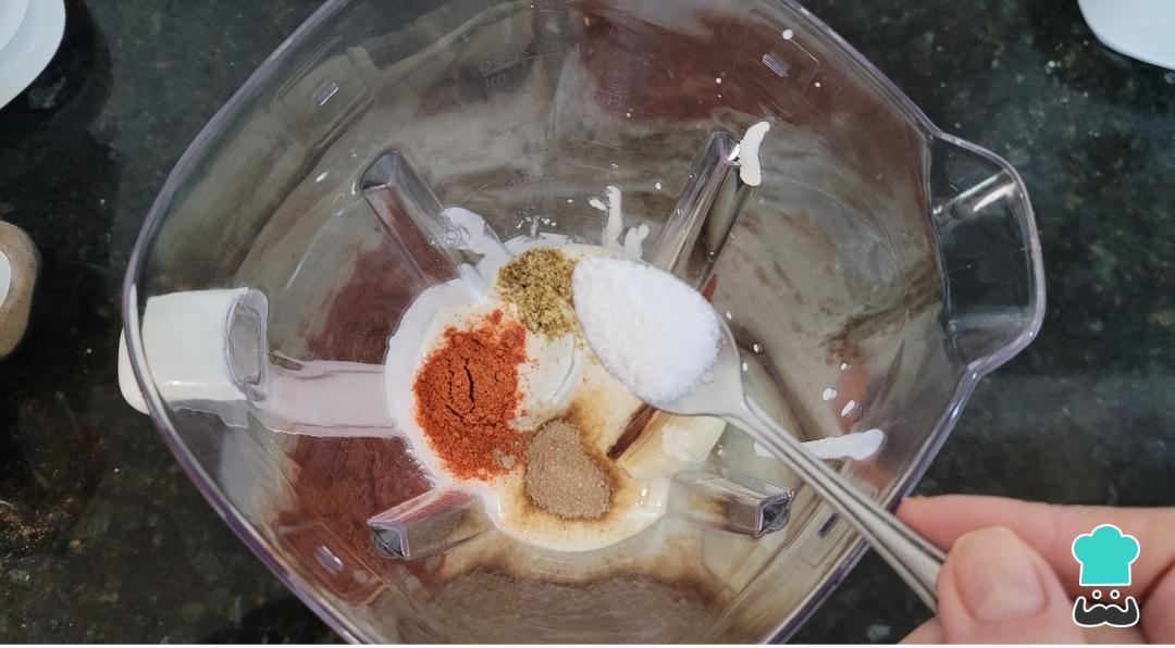 No liquidificador, coloque os pimentões, o creme de leite e os temperos.