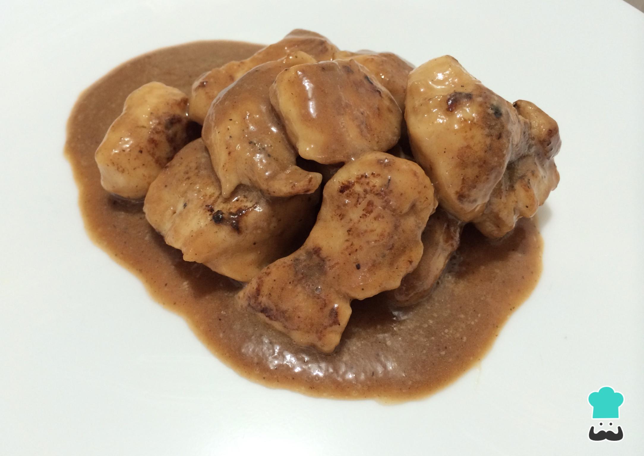 Retifique o sabor do molho de tamarindo com sal e pimenta, e está pronto a servir! Este molho agridoce pode ser servido com receitas de carne de porco, frango e até peixe. Neste caso cozinhei pedaços de frango na frigideira e juntei o molho.