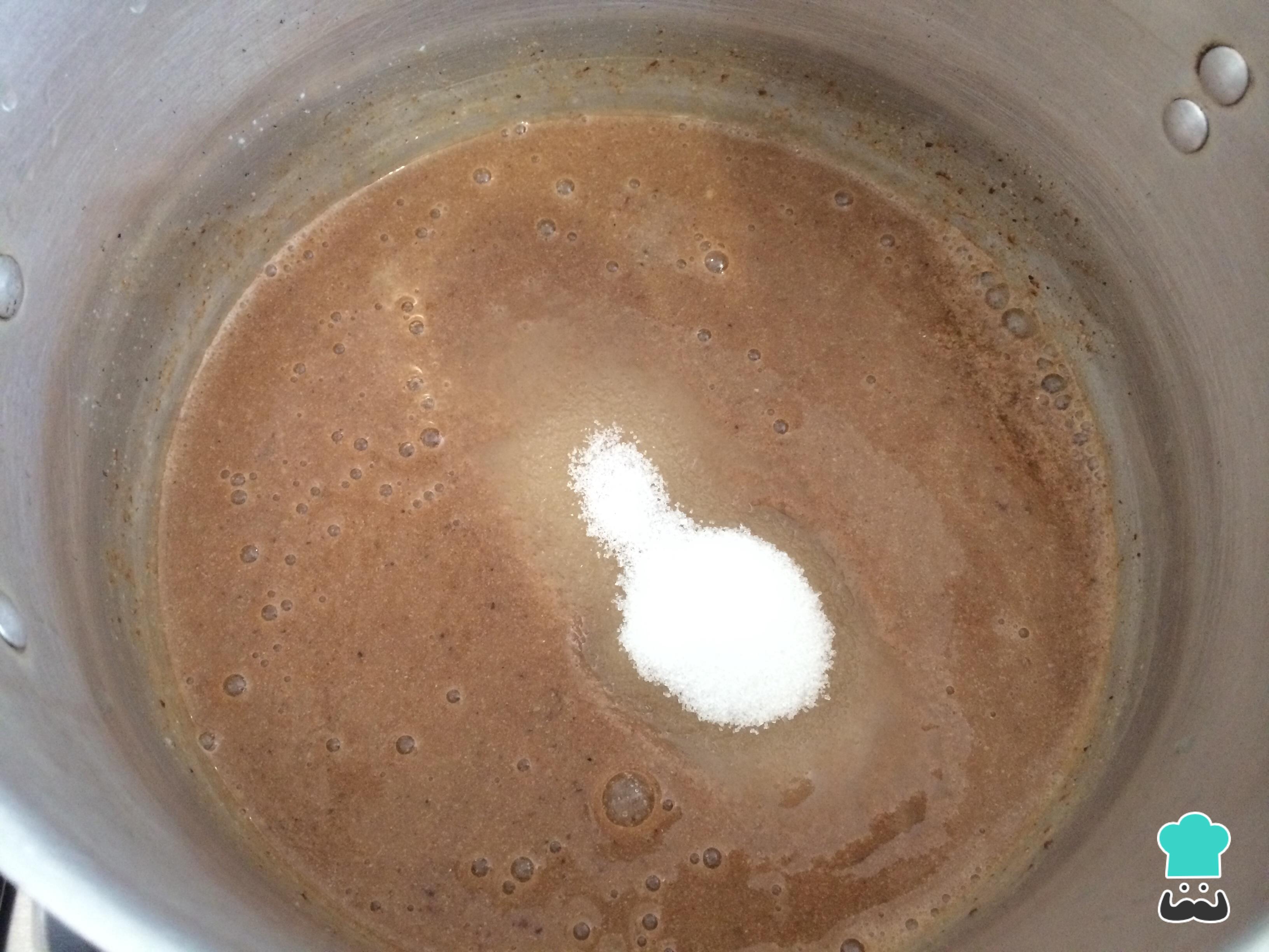 Acrescente o açúcar e misture para dissolver. Deixe cozinhar por 20 minutos em fogo baixo, até o molho reduzir e ficar um pouco espesso.