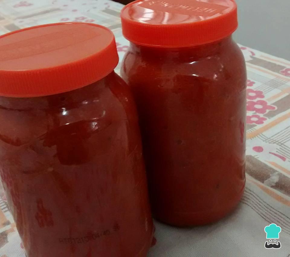 Deixe esfriar e divida seu molho de tomate simples e caseiro por potes com tampa. Conserve na geladeira e consuma dentro de 5 dias depois de aberto. Espero que tenha gostado e que deixe seu comentário!