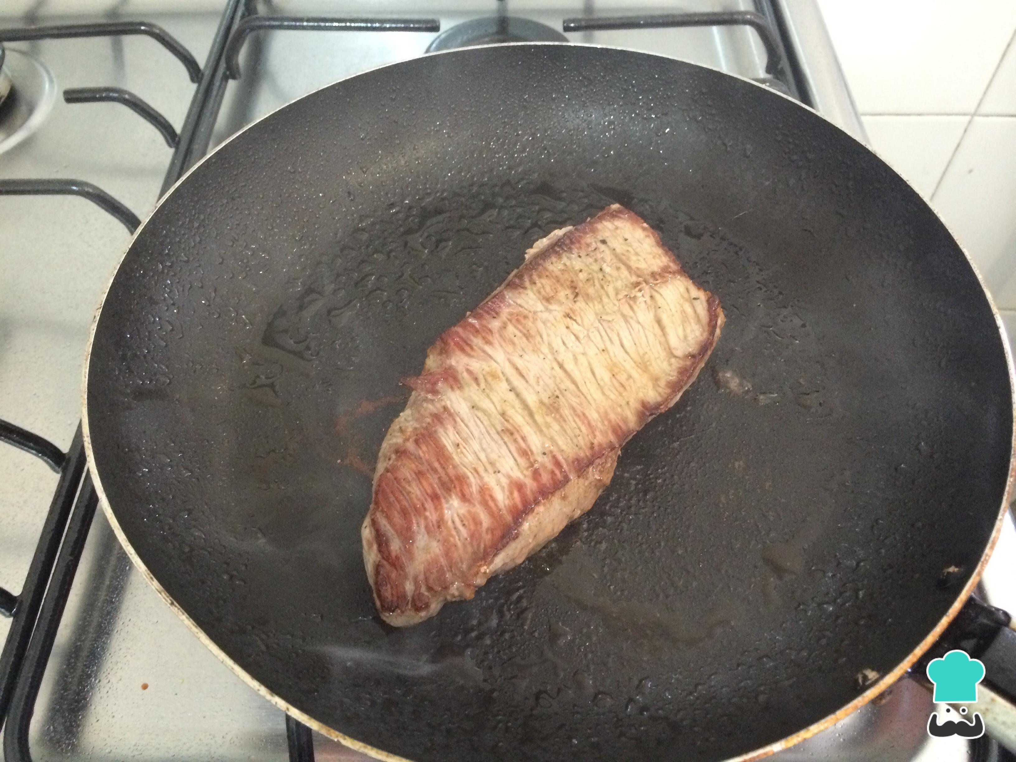 Em uma frigideira com um pouco de óleo, cozinhe de ambos os lados o filé temperado com sal e pimenta, até que fique ao seu gosto. Como opção também pode assar no forno.