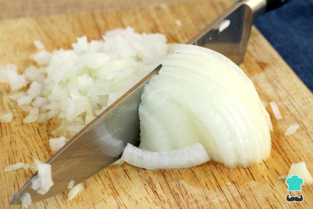 Preparar esse molho iogurte para salada é muito fácil! Comece por picar a cebola, a salsinha e o endro.