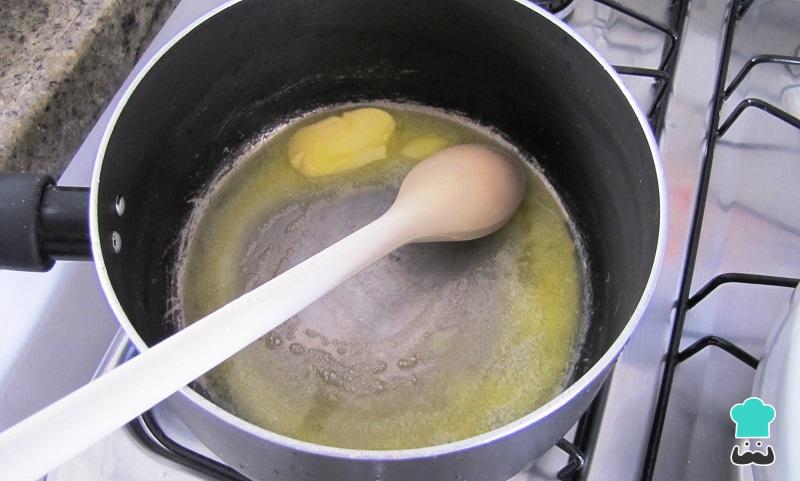 Leve ao fogo médio uma panela com a manteiga e mexa até dourar (não deixe queimar).
