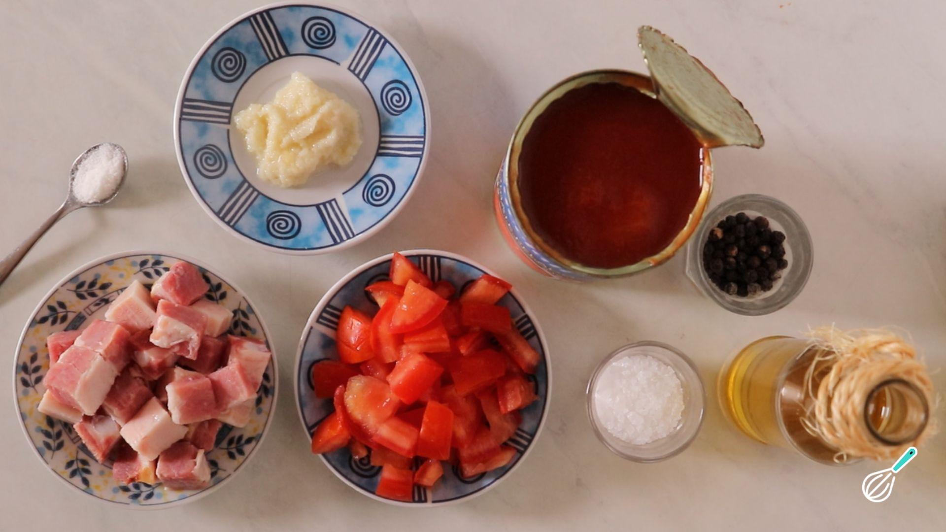 Comece separando os ingredientes do seu molho matriciana.
