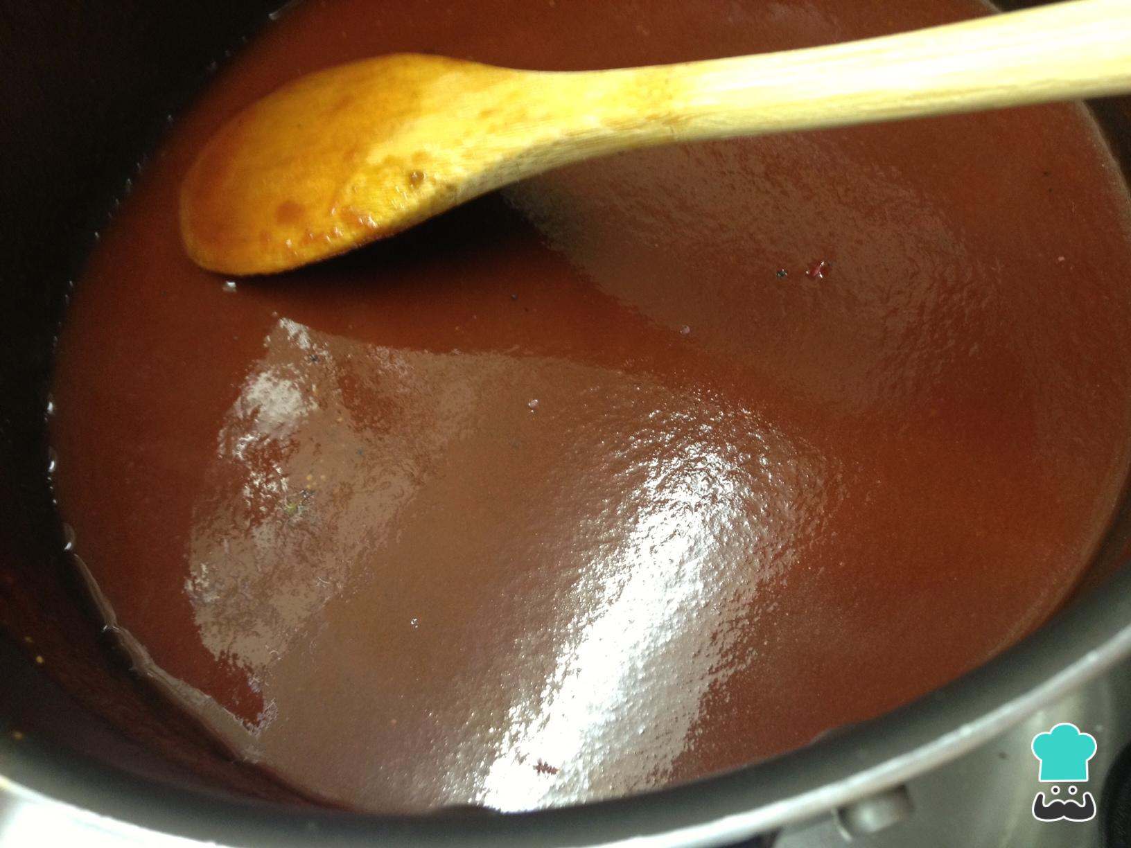 Coloque essa mistura em uma panela e acrescente os restantes ingredientes. Leve ao fogo médio-alto e cozinhe até ferver e ficar espesso.