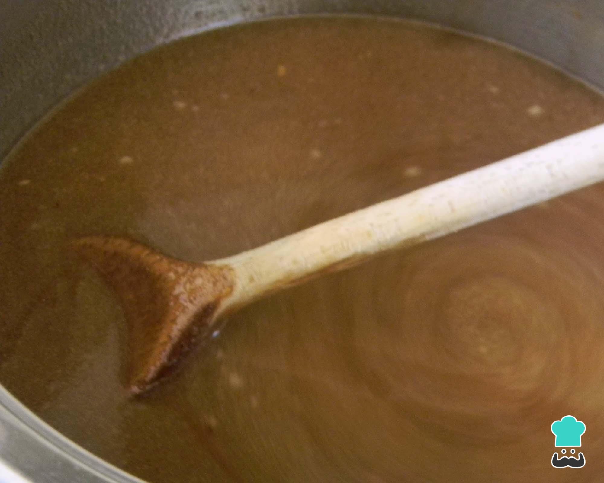 Dica: Se a o molho não espessar o suficiente até ferver dissolva mais 1 colher de sopa de maisena em um pouco de água (menos de meio copo) e adicione na panela.