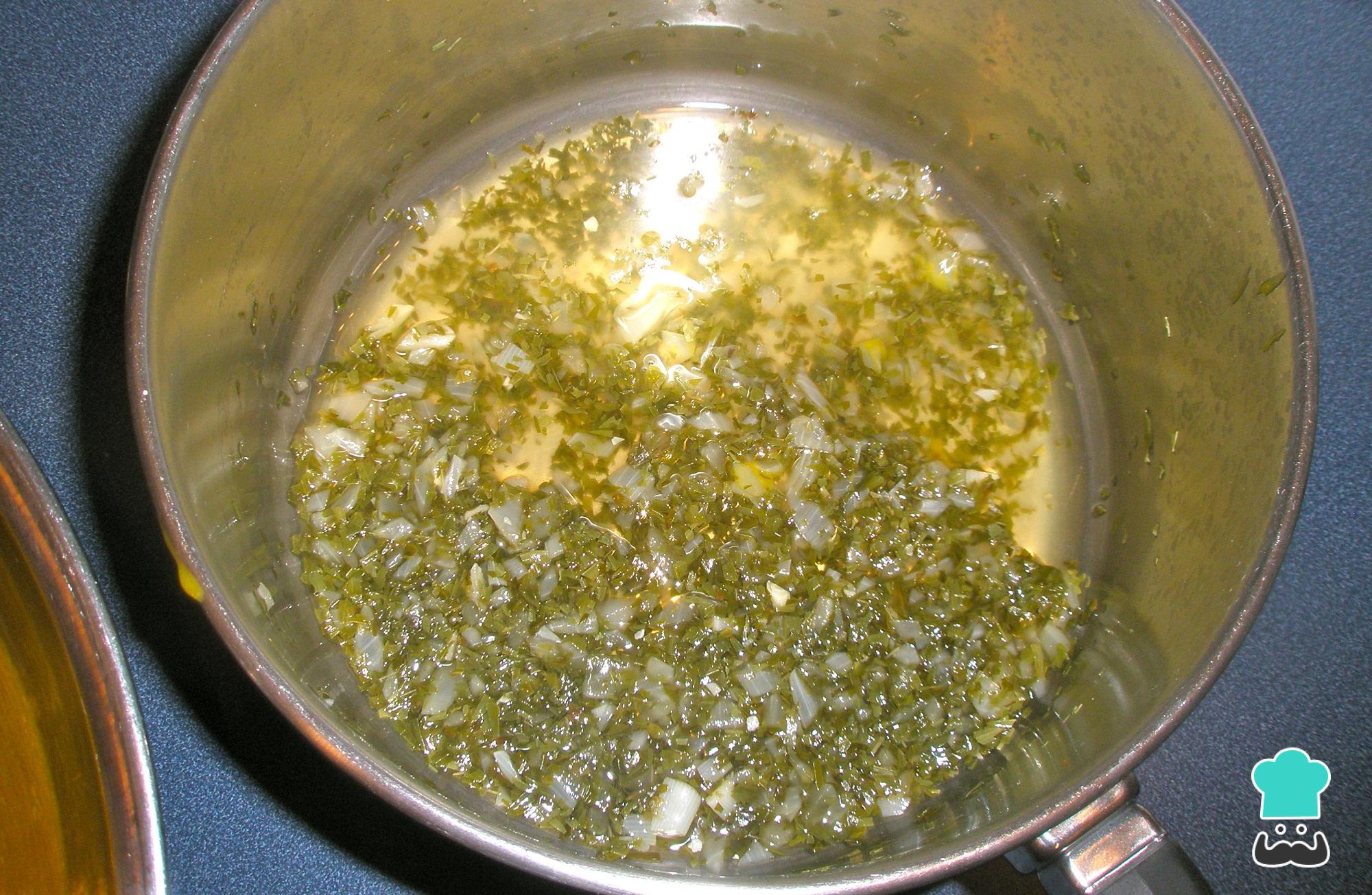 Para preparar esse molho para hambúrguer tipo maionese comece por levar ao fogo médio uma panela com a cebola, os grãos de pimenta, o vinagre e o estragão. Deixe ferver até que reduza a metade, desligue e deixe esfriar.