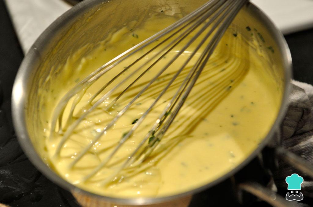 Finalmente acrescente a manteiga derretida, aos poucos, enquanto bate, de forma a obter uma consistência cremosa tipo maionese.