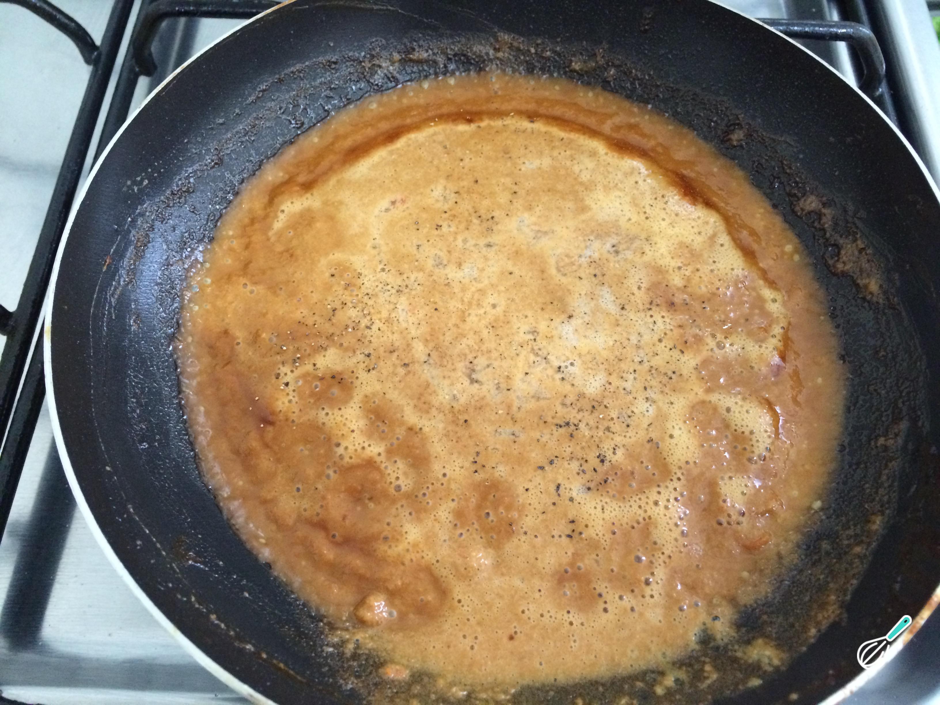 Adicione um pouco de suco de limão e água, para continuar preparando este molho tailandês. Deixe cozinhar por mais 1 minuto.
