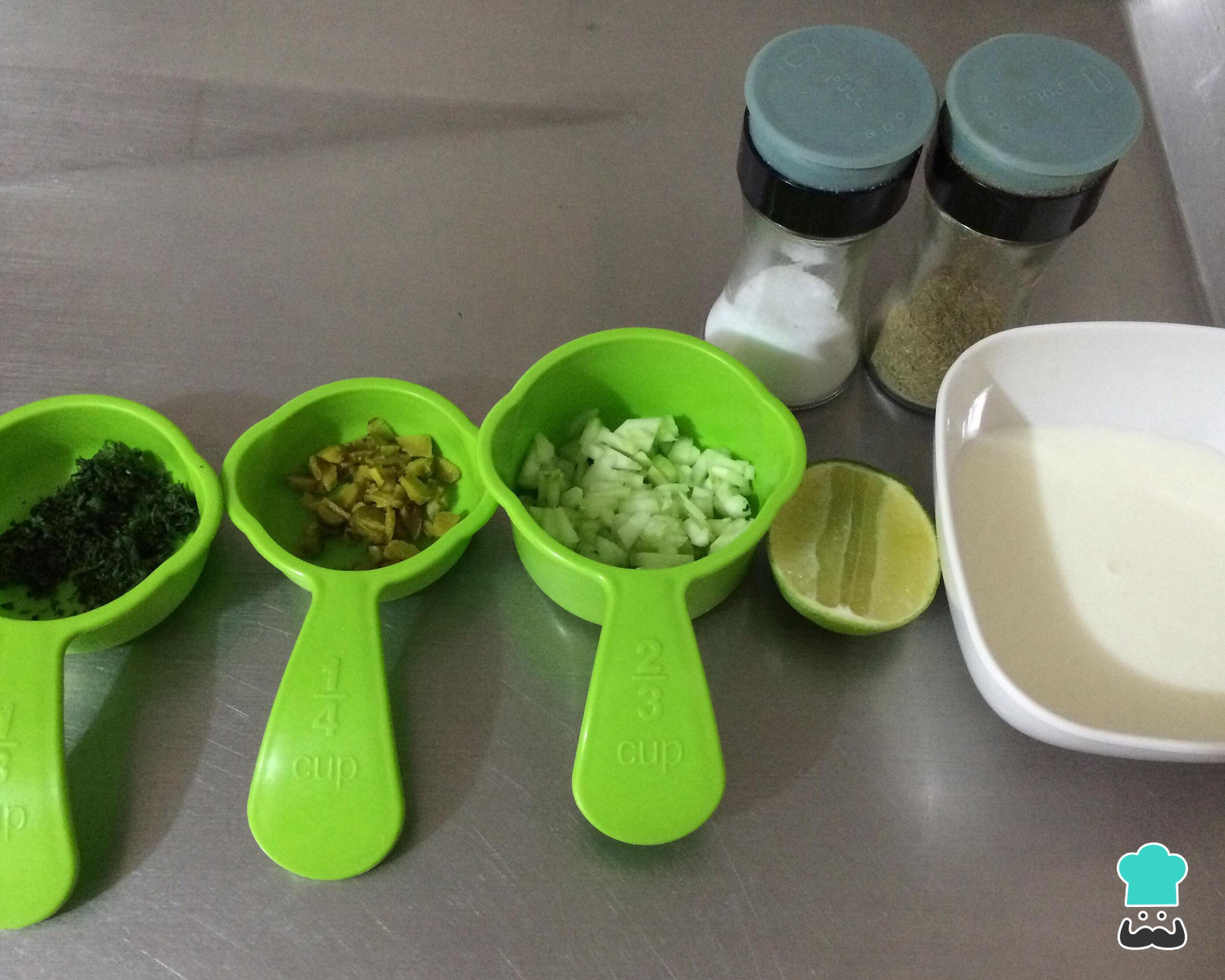 Antes de fazer esta receita de molho de iogurte e pepino, o primeiro passo é separar os ingredientes necessários ao preparo.