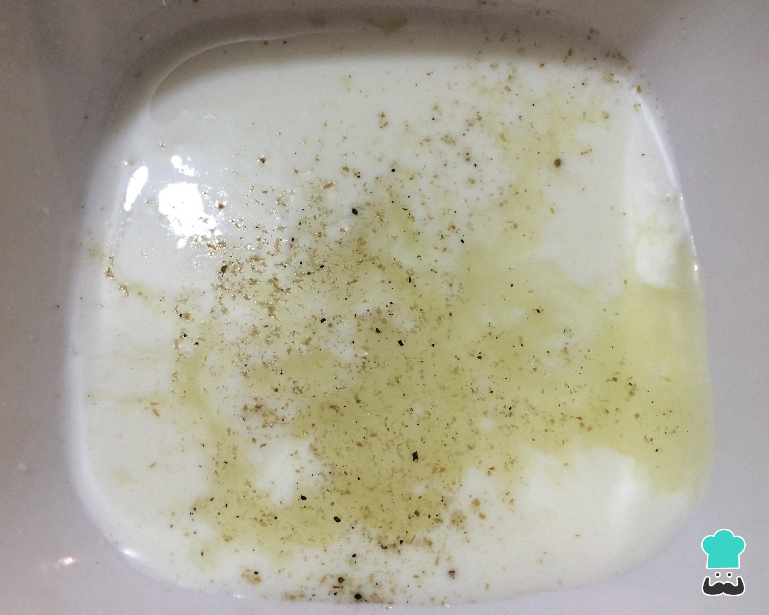 Numa tigela ou no liquidificador misture o iogurte, o suco de 1 limão, sal e pimenta.