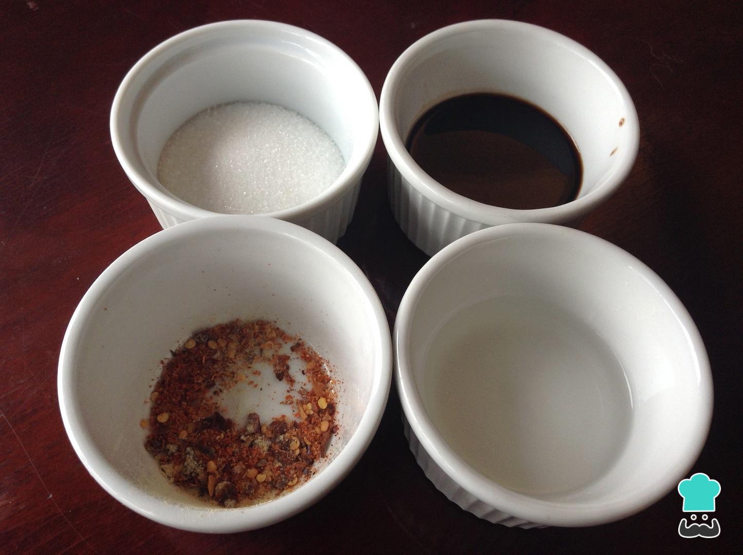 O primeiro passo para fazer esta receita de molho japonês é reunir os ingredientes.