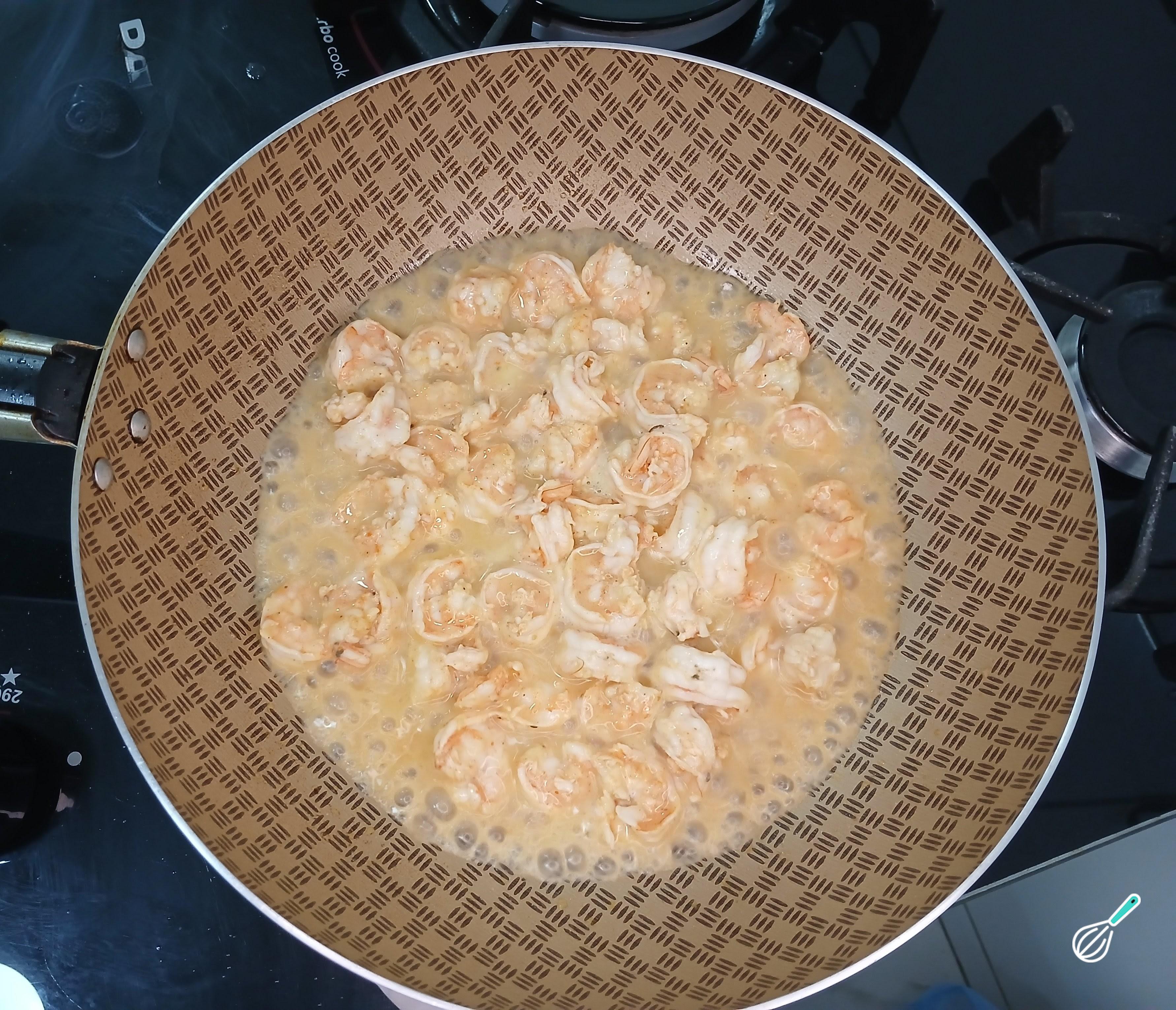 Em uma panela média, coloque a metade o azeite de dendê e coloque os camarões para refogar. Em fogo baixo para evitar que queime. Vire-os para que dourem dos dois lados.