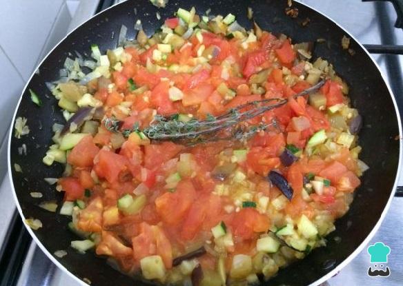 Quando a cebola estiver dourada e o alho-poró a começar a caramelizar, adicione os restantes legumes devidamente cortados, tempere e deixe cozinhar por uns 20 minutos.
