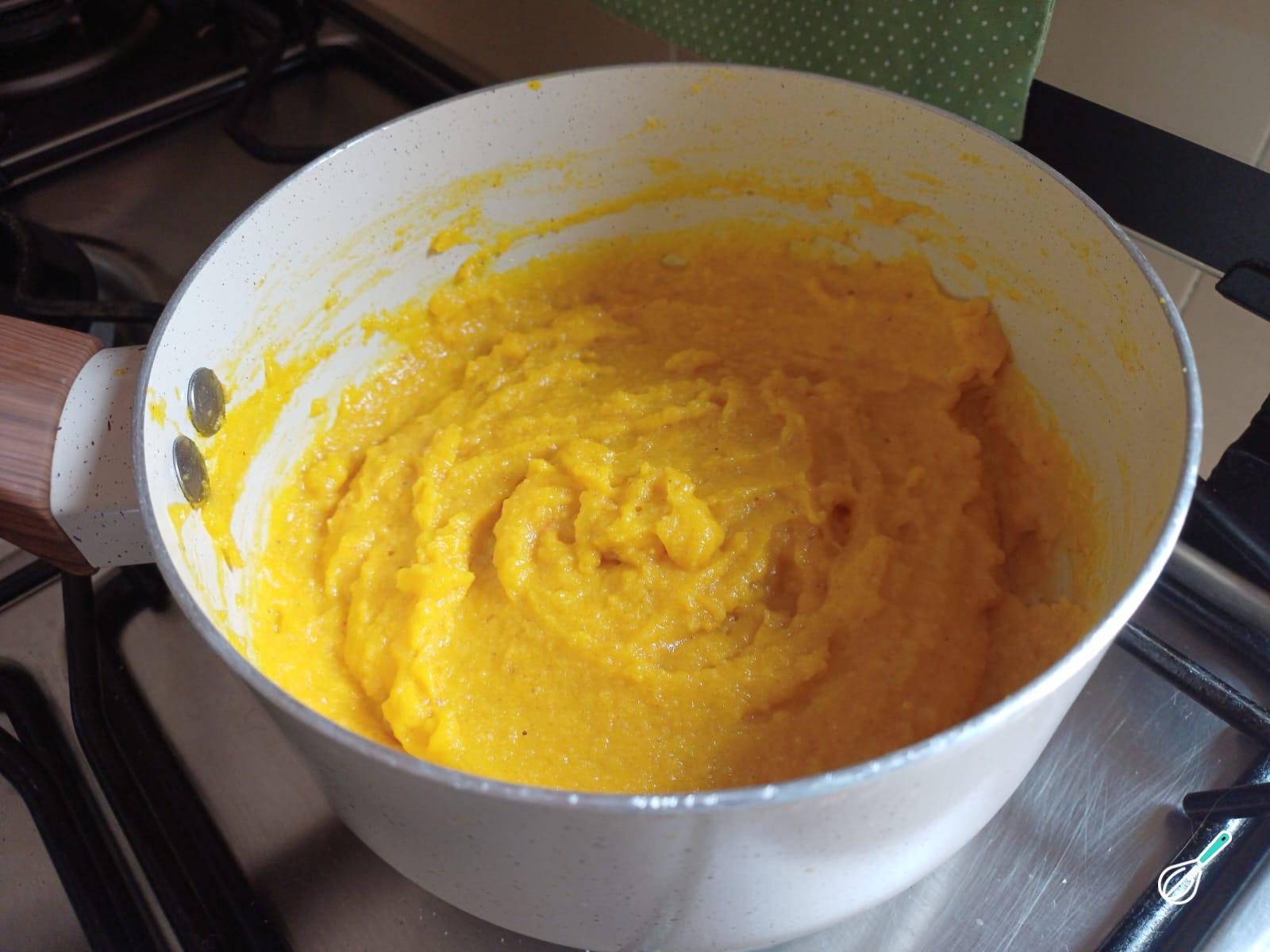 Coloque o caldo em fogo baixo, aos poucos acrescente a farinha de mandioca, mexendo sempre até atingir uma textura cremosa e lisa. Adicione uma colher de manteiga para dar brilho. Ajuste o sal se necessário.