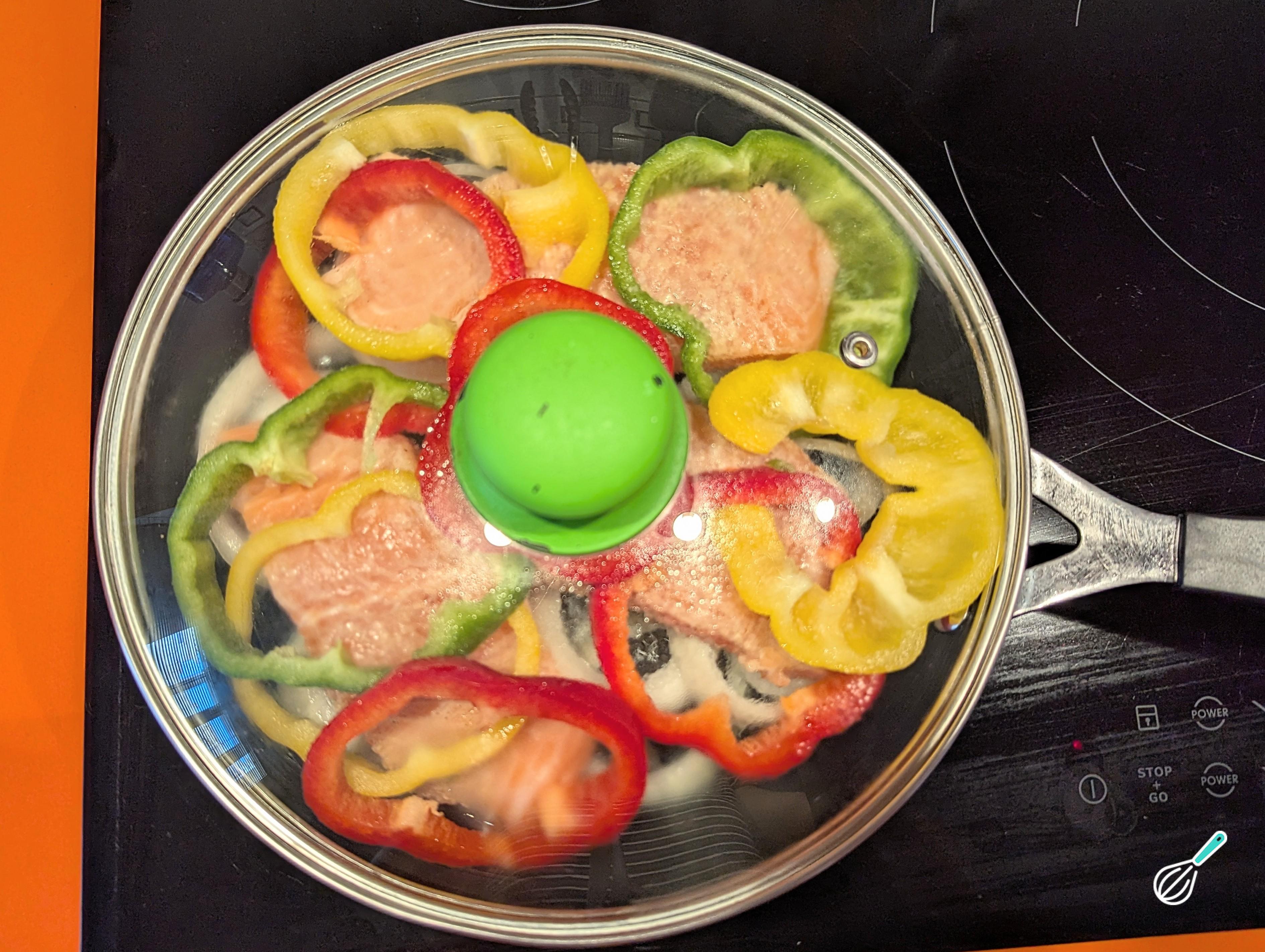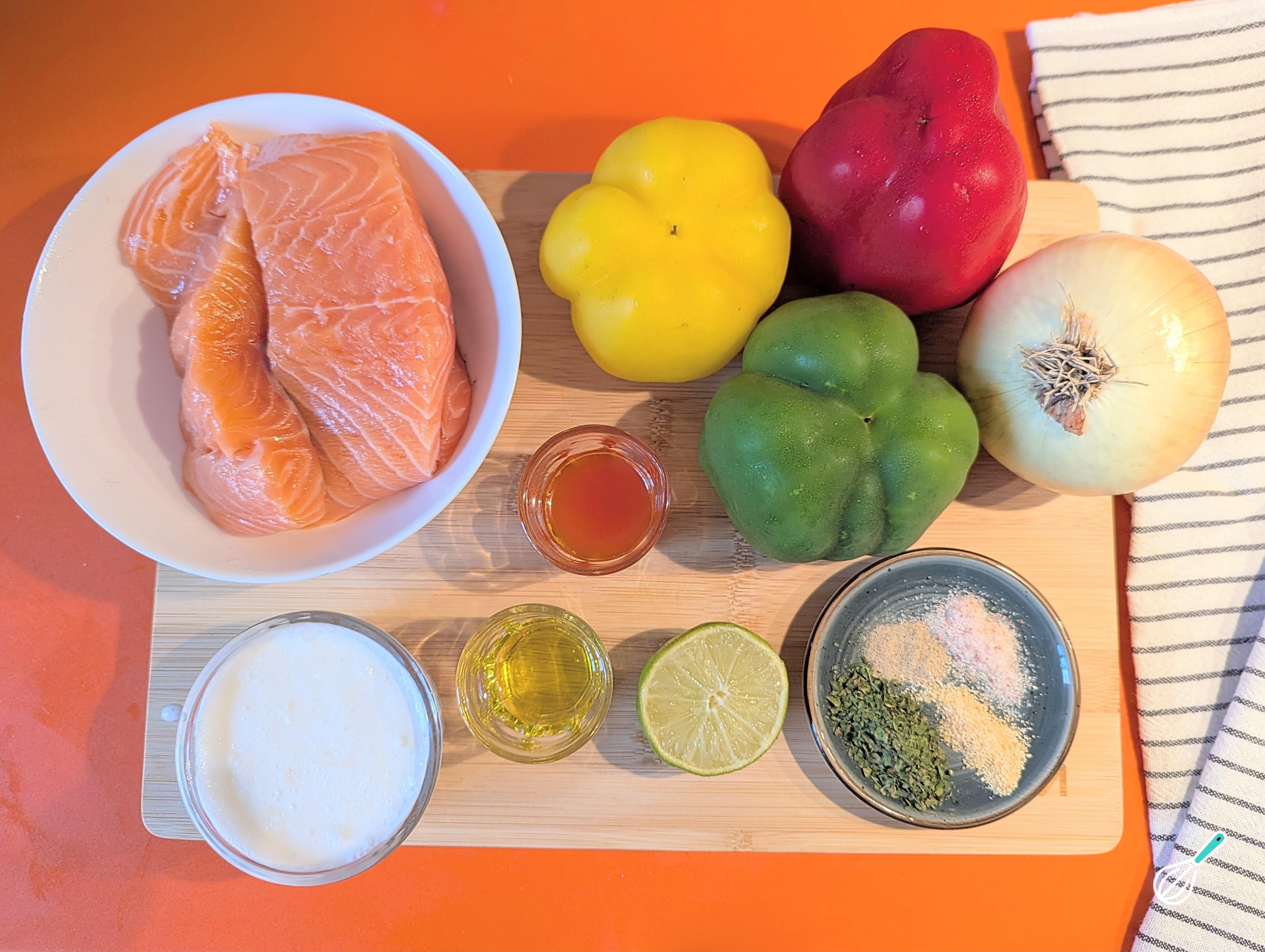 Para preparar esse delicioso prato de moqueca de salmão, vamos começar separando todos os ingredientes da lista. Lave bem os pimentões e o tomate. Caso esteja utilizando coentro ou salsinha fresca, higienize e pique em pedaços pequenos. Reserve.
