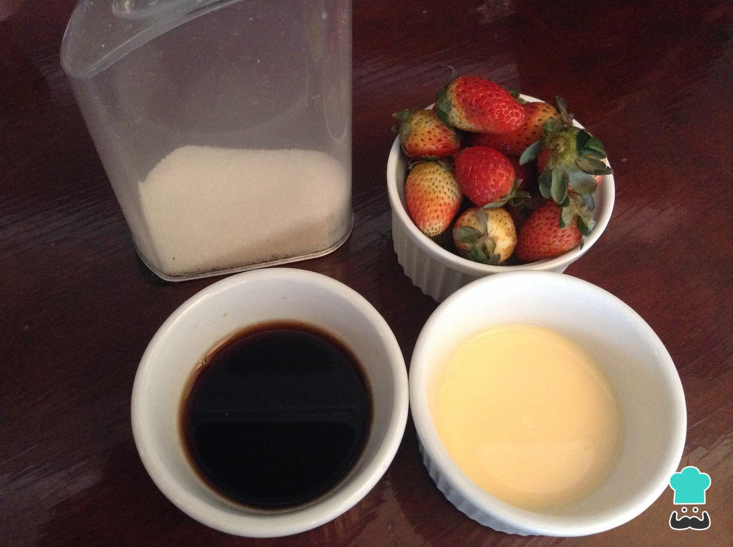 O primeiro passo para fazer esta receita de morango é reunir os ingredientes necessários.