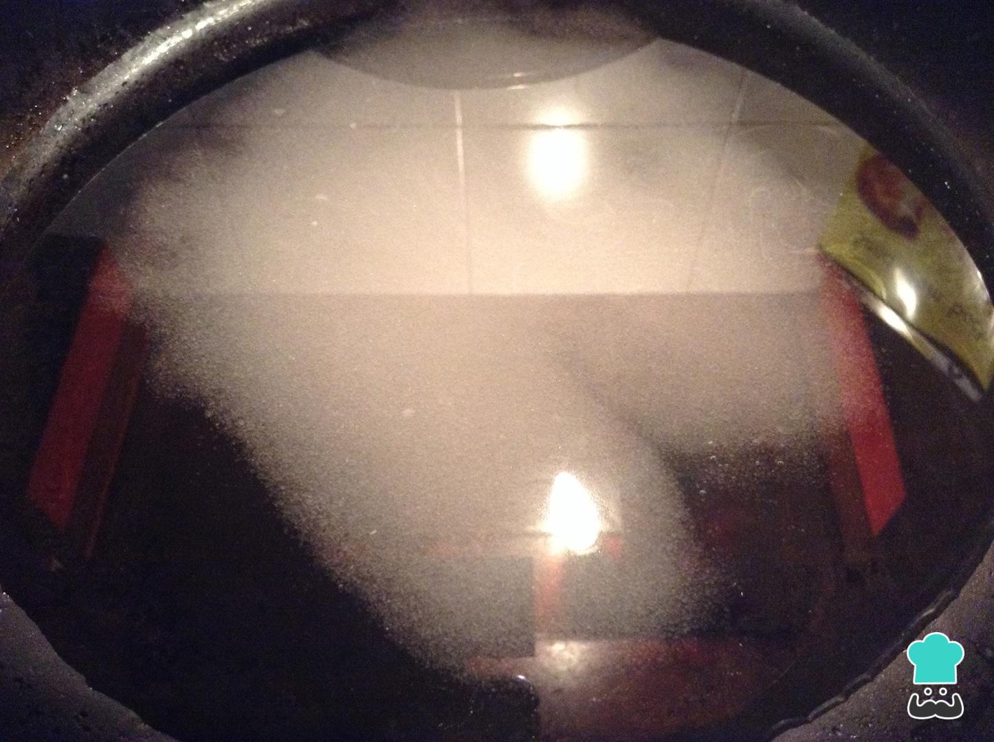 Em seguida leve ao fogo uma panela com a água e e o açúcar e deixe dissolver até obter uma calda.