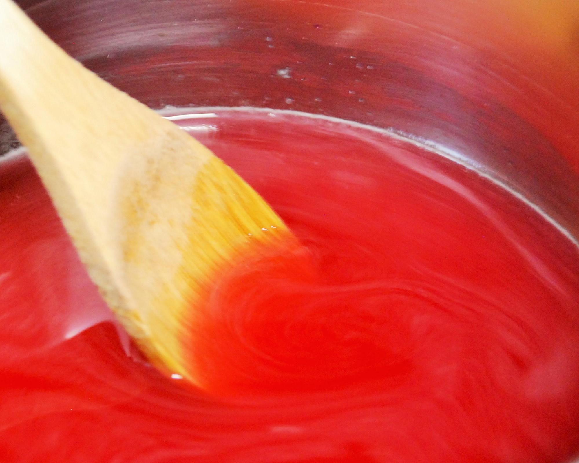 Coloque a gelatina em pó em três tigelas diferentes, adicione uma xícara de água fervendo em cada tigela e mexa durante alguns minutos até dissolver toda a gelatina.