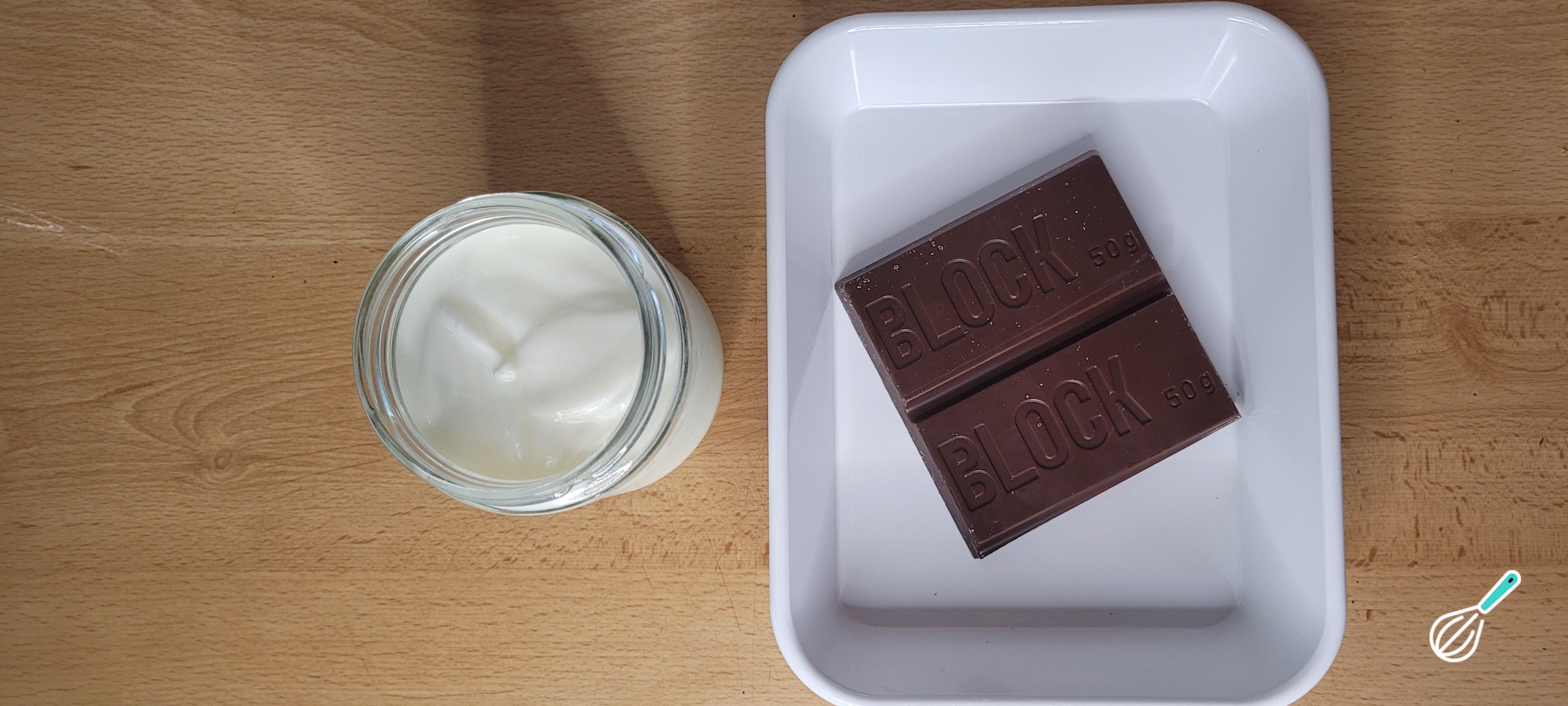 Separe os ingredientes para fazer sua Mousse com iogurte natural de chocolate.