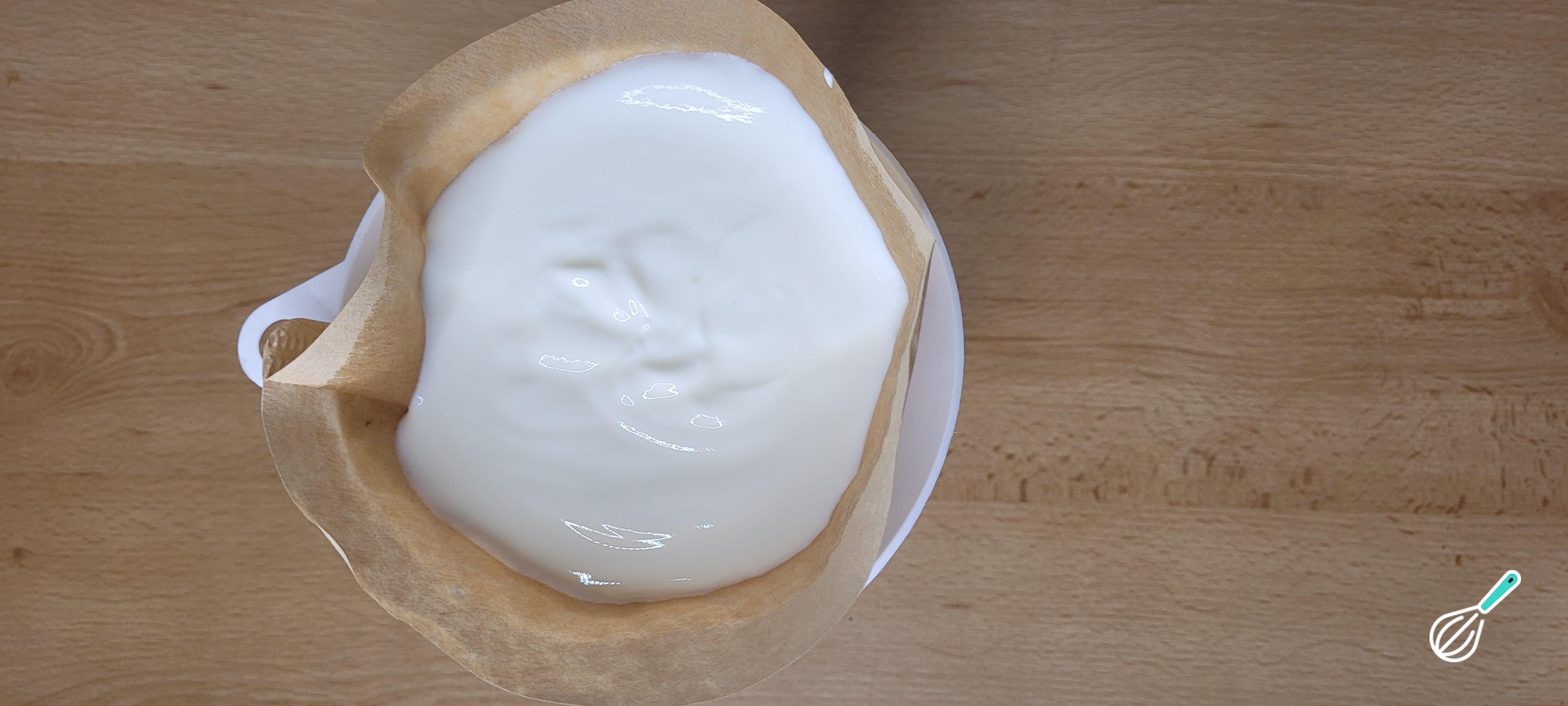 Depois de 2h, o iogurte deverá estar bem mais cremoso com uma consistência mais próxima à de um cream cheese.