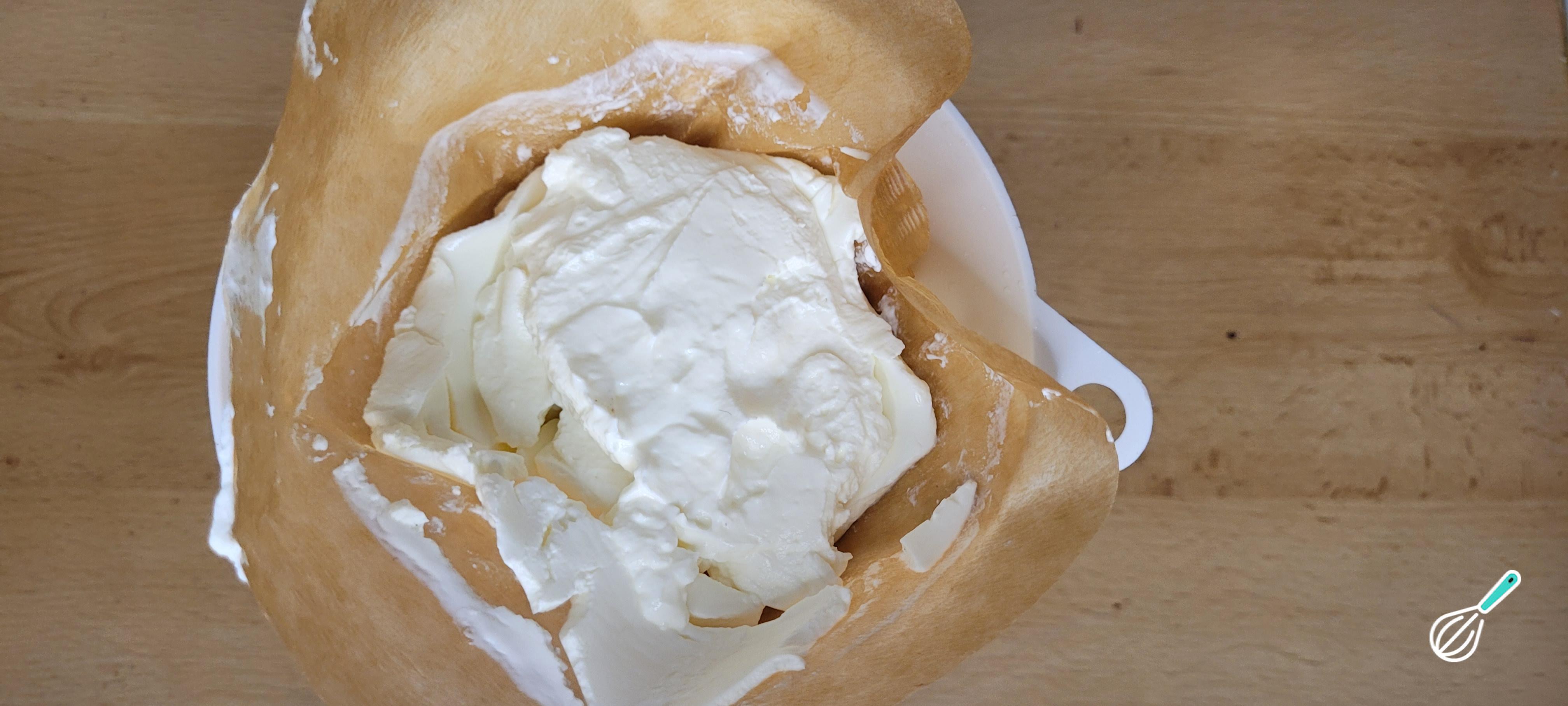 Coloque o iogurte em um filtro de café ou pano de prato bem limpo com um recipiente por baixo para drenar o excesso de líquido. Isso fará com que a mousse fique mais cremosa. Deixe drenar na geladeira por cerca de 2h.