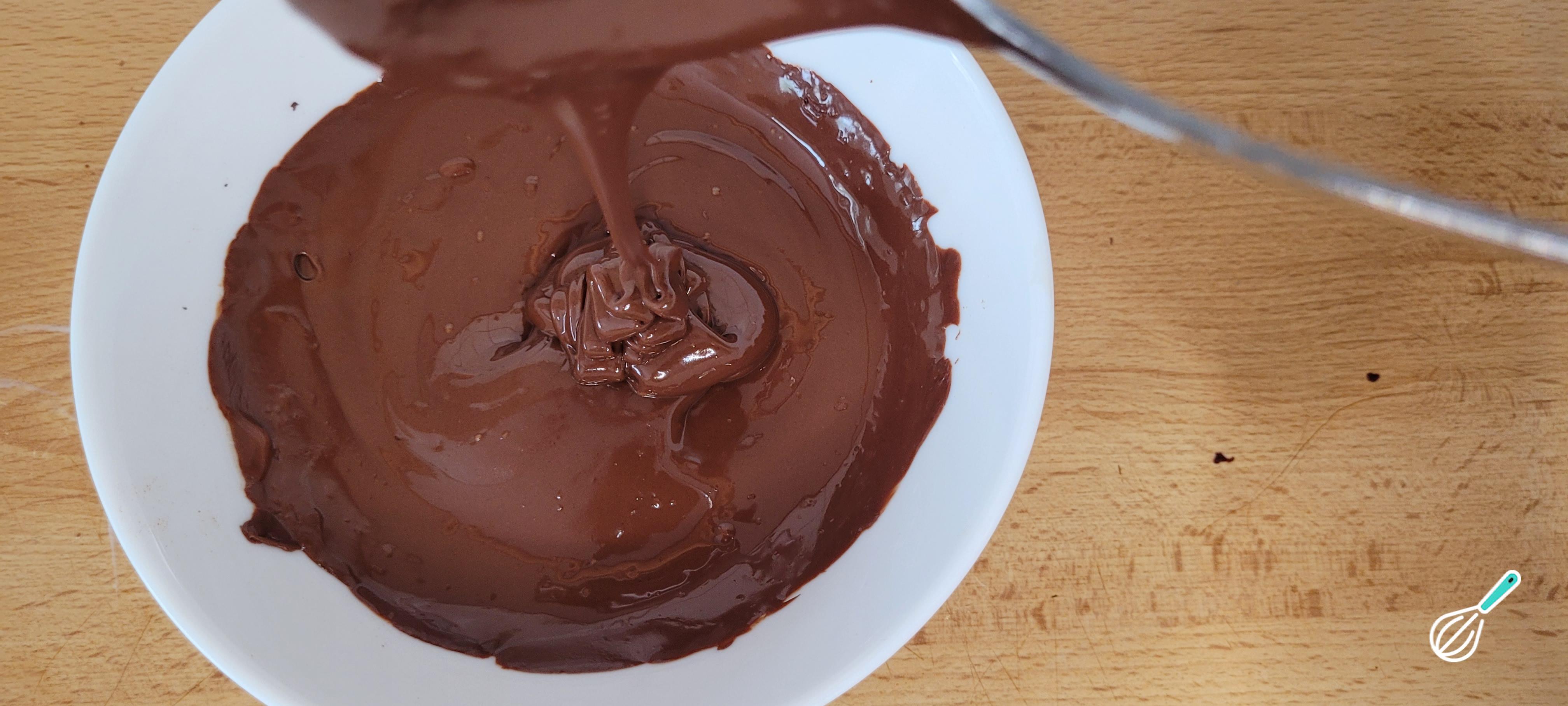 Misture o iogurte drenado com o chocolate derretido até formar um creminho bem consistente.