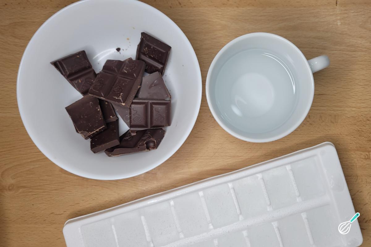 Além do chocolate e da água que são os ingredientes da mousse, você precisa de cubos de gelo para esfriar o chocolate e dar a consistência de mousse. Se isso ainda não te convenceu a testar essa receita, em menos de 10 minutos você pode ter uma mousse de chocolate cremosa mais saudável, com menos gordura aí na sua casa.
