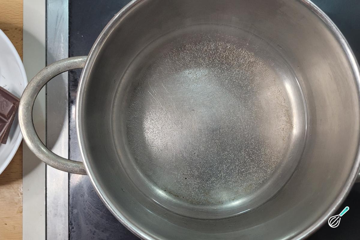 Leve uma panela com água ao fogo e deixe a água começar a formar pequenas bolhas no fundo da panela.