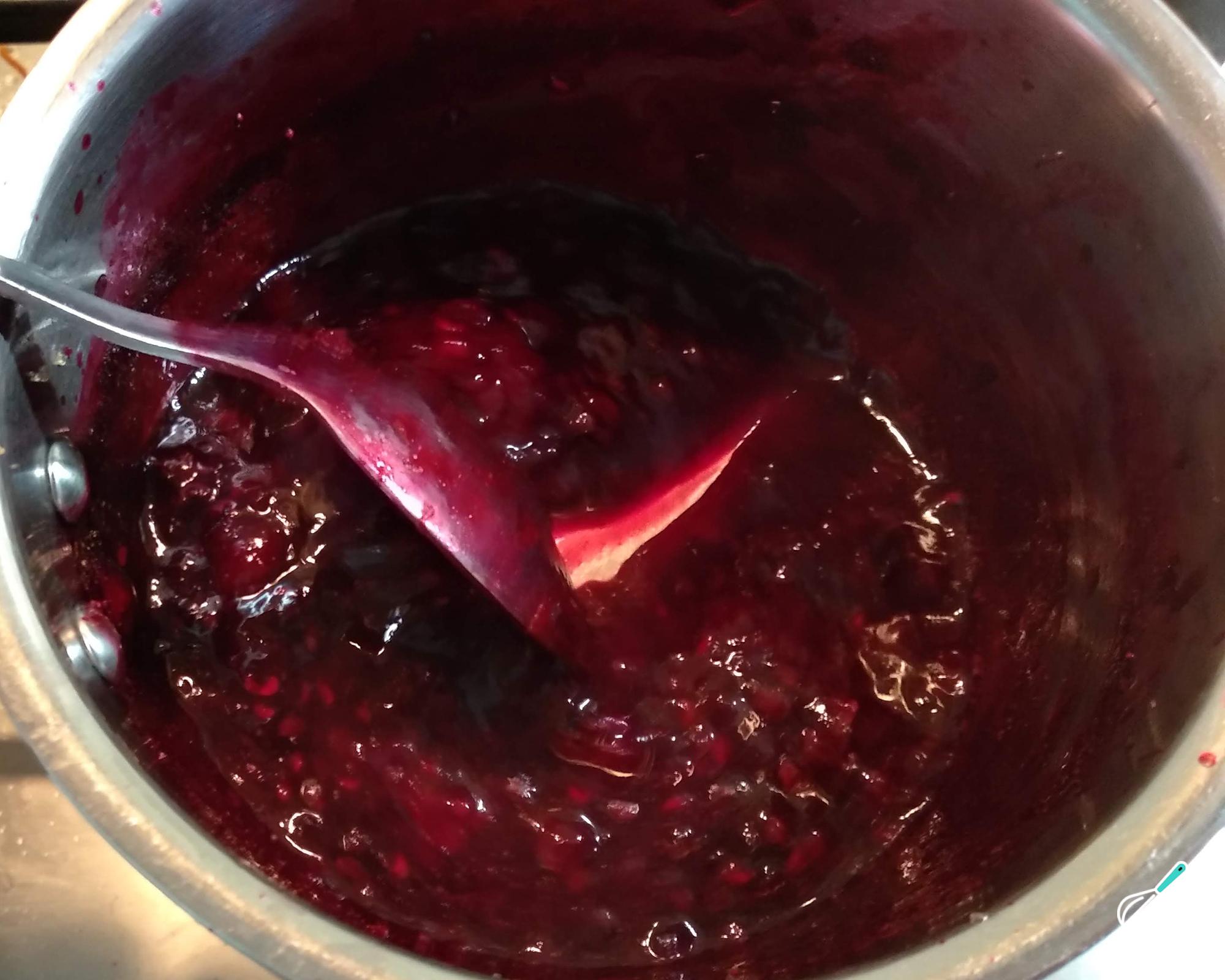 Você saberá que a calda de frutas vermelhas caseira está no ponto quando as frutas "derreterem" e quando você conseguir ver o fundo da panela quando mexer com a colher. Desligue e deixe esfriar.