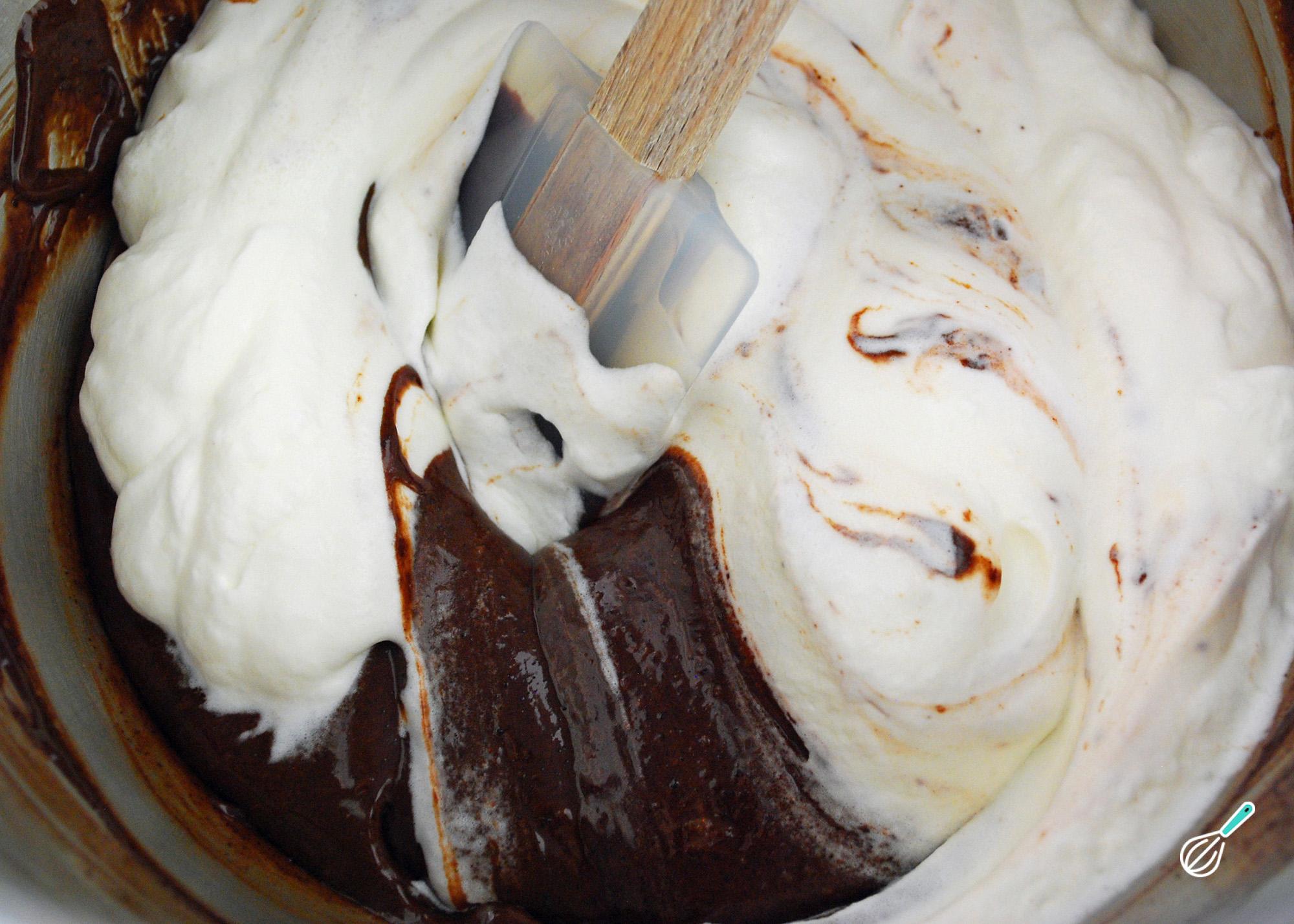 Finalmente adicione as claras batidas à mistura anterior, pouco a pouco, e enquanto incorpora delicadamente com uma espátula.