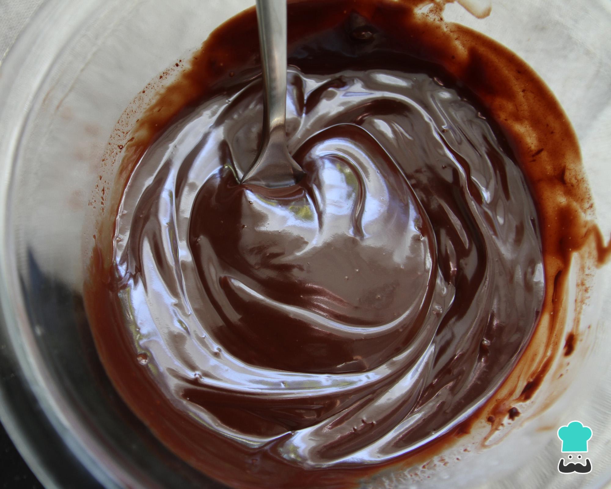 Quebre o chocolate e derreta no microondas durante 30 segundos em potência máxima. Retire, mexa e coloque por mais 30 segundos. Retire, mexa e, se o chocolate ainda não estiver totalmente derretido, esquente por mais 30 segundos. Respeite estes tempos para derreter o chocolate sem queimar.