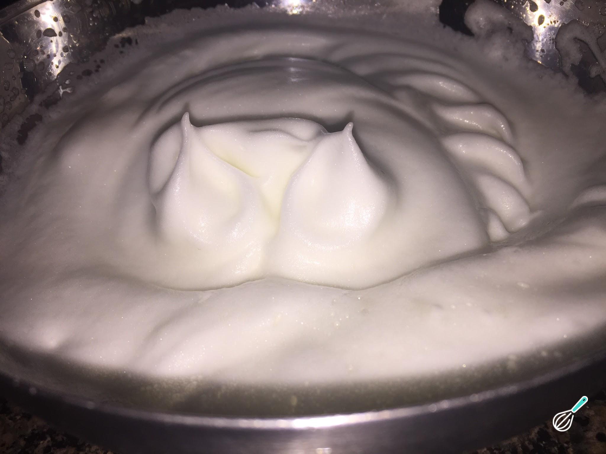 Bata as claras em neve, até estas ficarem durinhas. Adicione as claras à mistura de chocolate e misture lentamente.