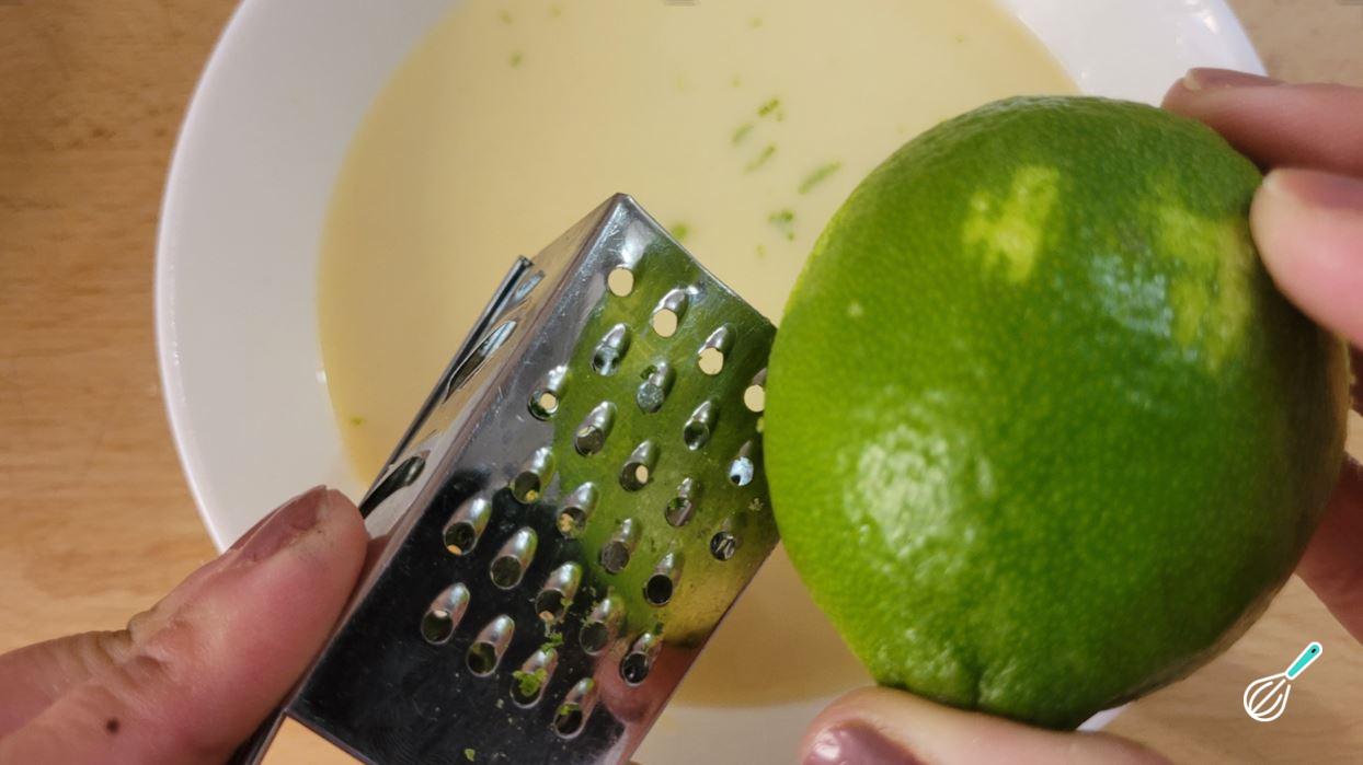Quando o chocolate estiver derretido, adicione as raspas de 2 limões. Evite pegar a parte branca para não amargar a receita.