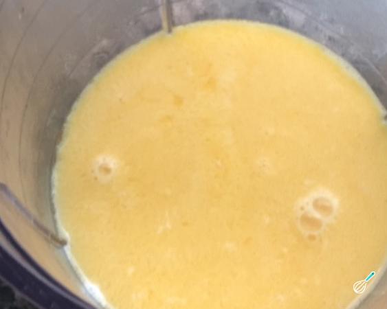 Em seguida bata no liquidificador com o restante dos ingredientes por 2 minutos em velocidade alta. No final deverá obter uma mistura bem lisinha, se tiver grumos passe por uma peneira.