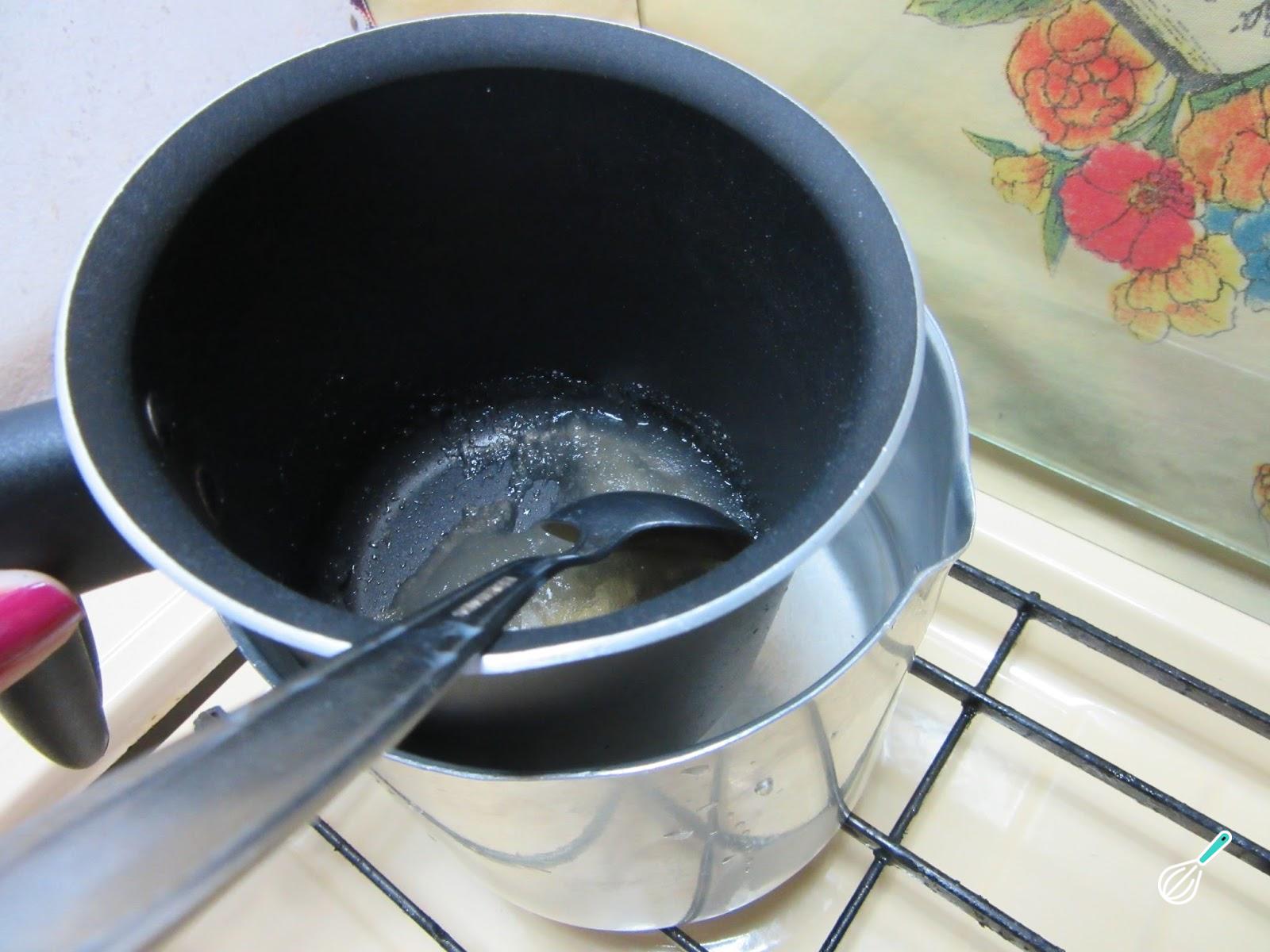 Para fazer essa mousse de maracujá fácil, comece por dissolver a gelatina em meia xícara de água fria. De seguida, derreta em banho-maria e reserve.