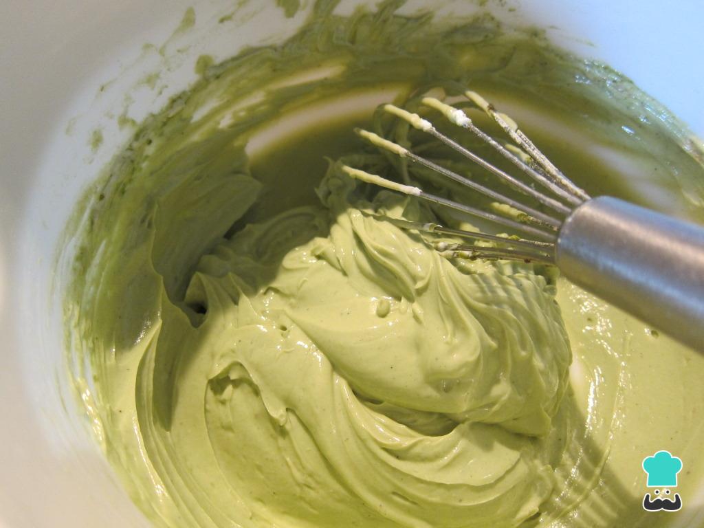 Preparar esta receita de mousse de matcha é bem simples! Comece por bater no liquidificador ou manualmente o creme de leite e o leite condensado.
