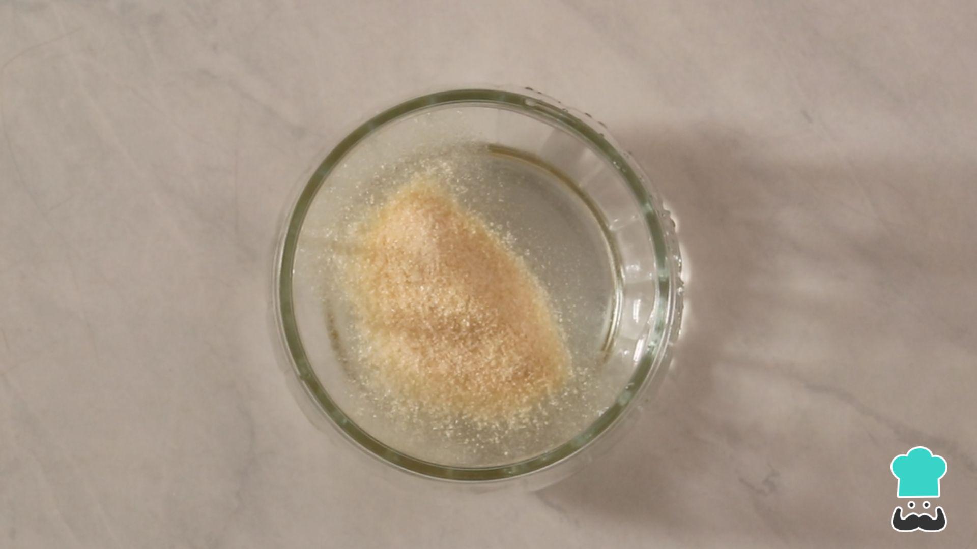 Hidrate a gelatina de acordo com as instruções da embalagem. Ela é essencial para a gente fazer esse mousse de milho.