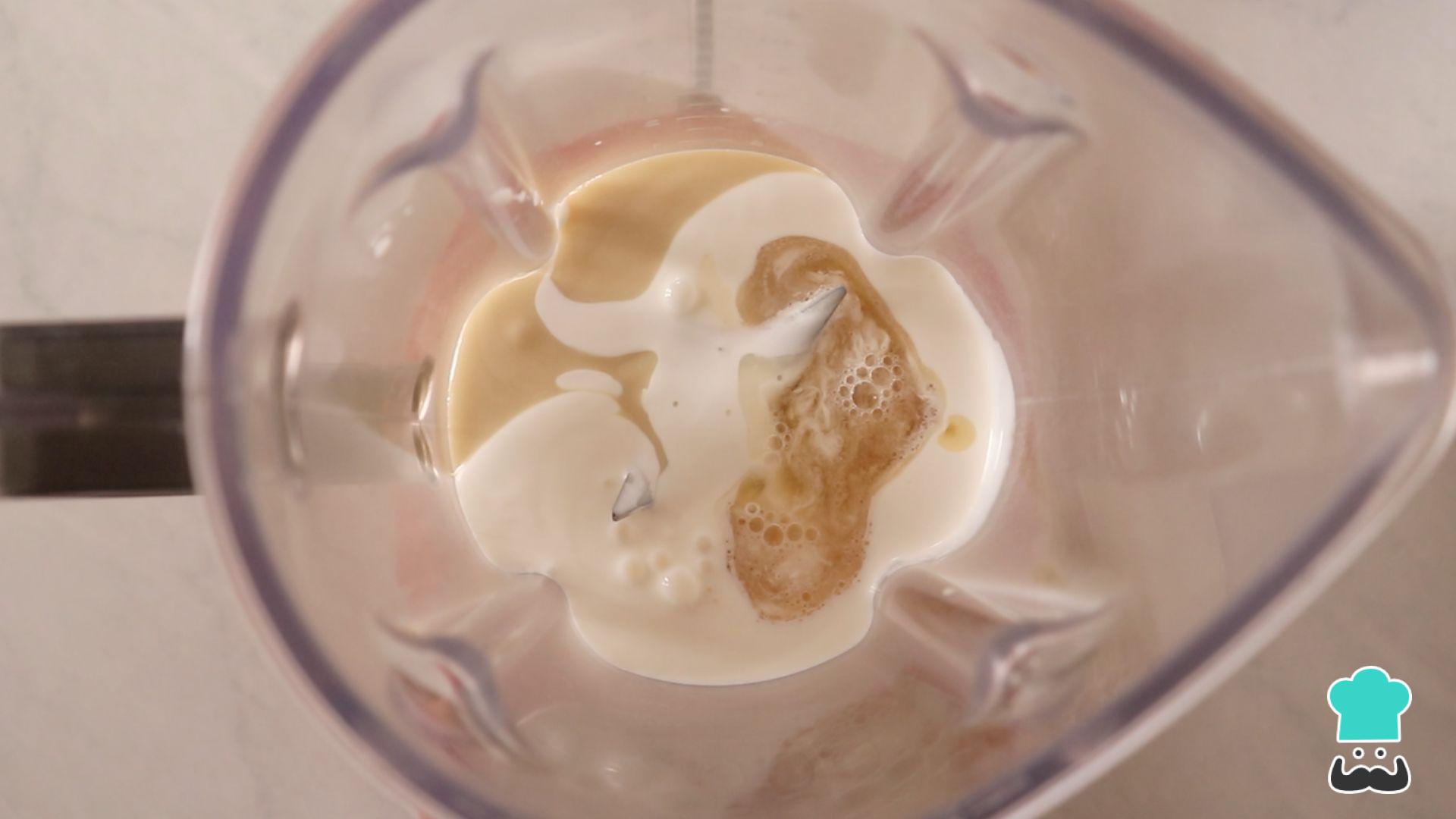 Agora é só colocar tudo no liquidificador: o leite condensado, o creme de leite, o milho em lata já drenado e a gelatina hidratada e bater bem.
