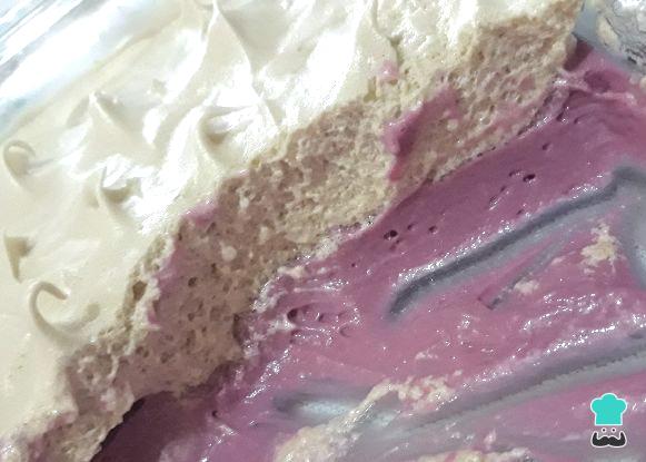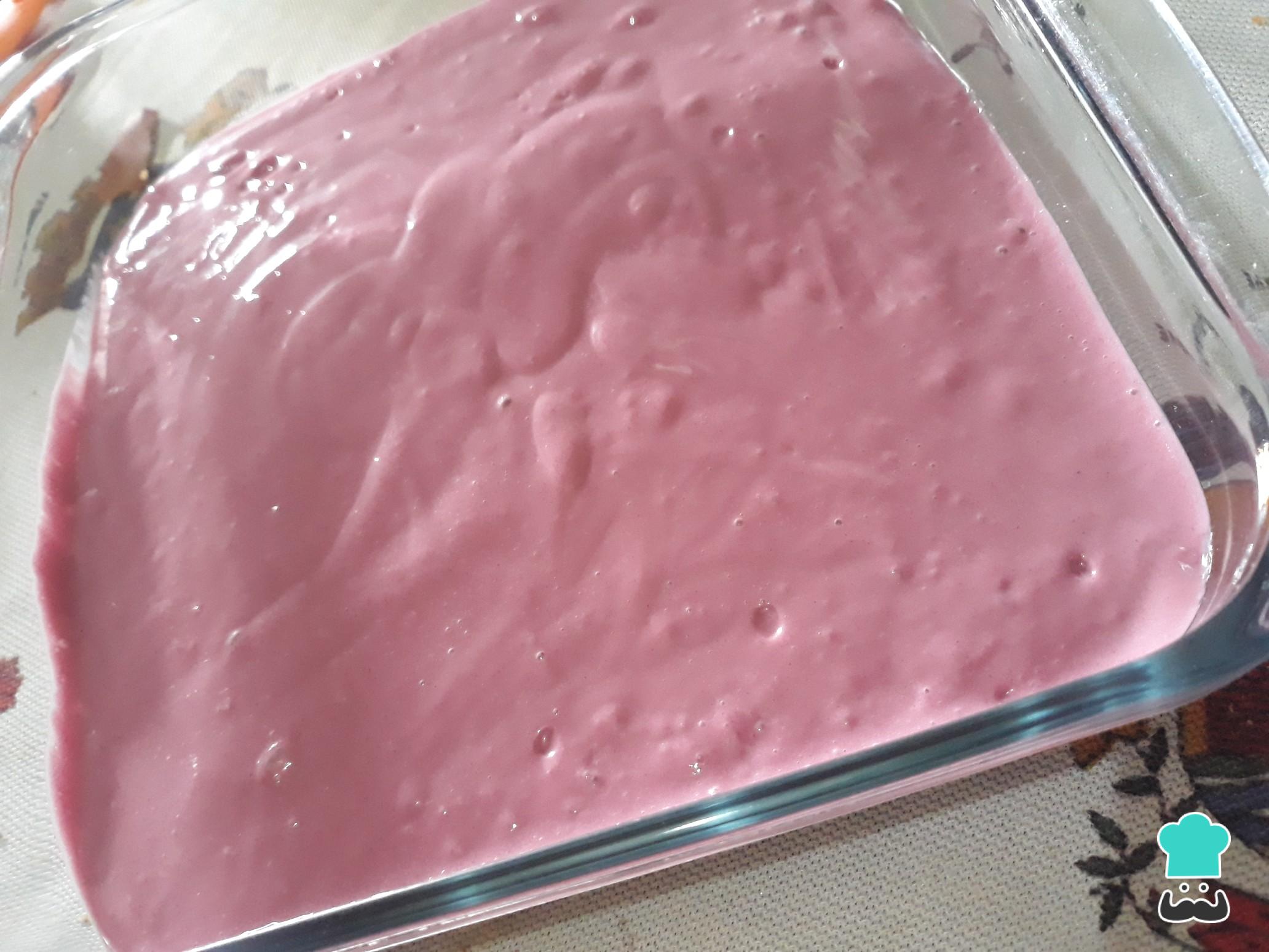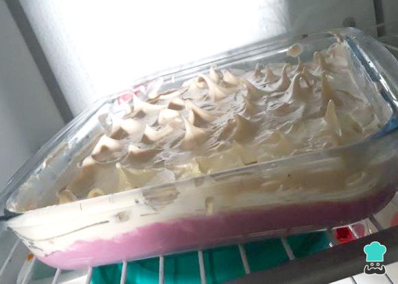 Em um refratário untado disponha a misturar anterior, que será nossa mousse com Tang de uva.