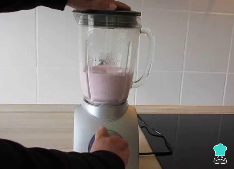 Num liquidificador, misture a gelatina, o leite condensado, o leite, o creme de leite e deixe misturar, até obter uma textura homogênea.