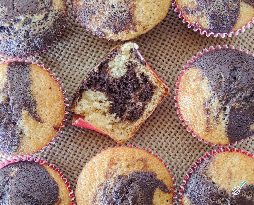 A receita de hoje são esses muffins de baunilha mesclados com chocolate, que podem ser uma opção deliciosa para levar na lancheira, consumir no café da manhã ou enganar a fome fora de casa.