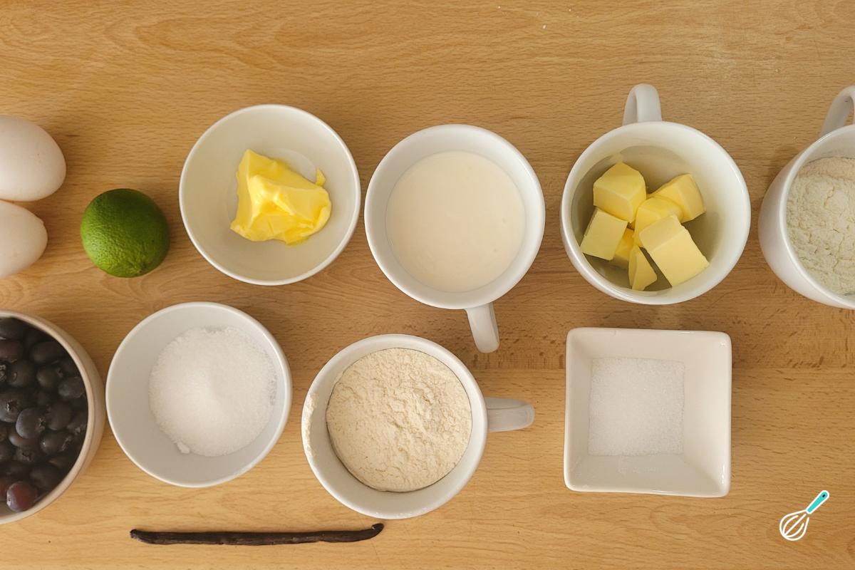 Separe os ingredientes para fazer seus muffins de blueberry. Para a farofa crocante que vai por cima, é importante que a manteiga esteja gelada - é isso que vai garantir a textura crocante. Já para a massa, a manteiga deve estar amolecida em temperatura ambiente, para ficar mais fácil de misturar com o açúcar.