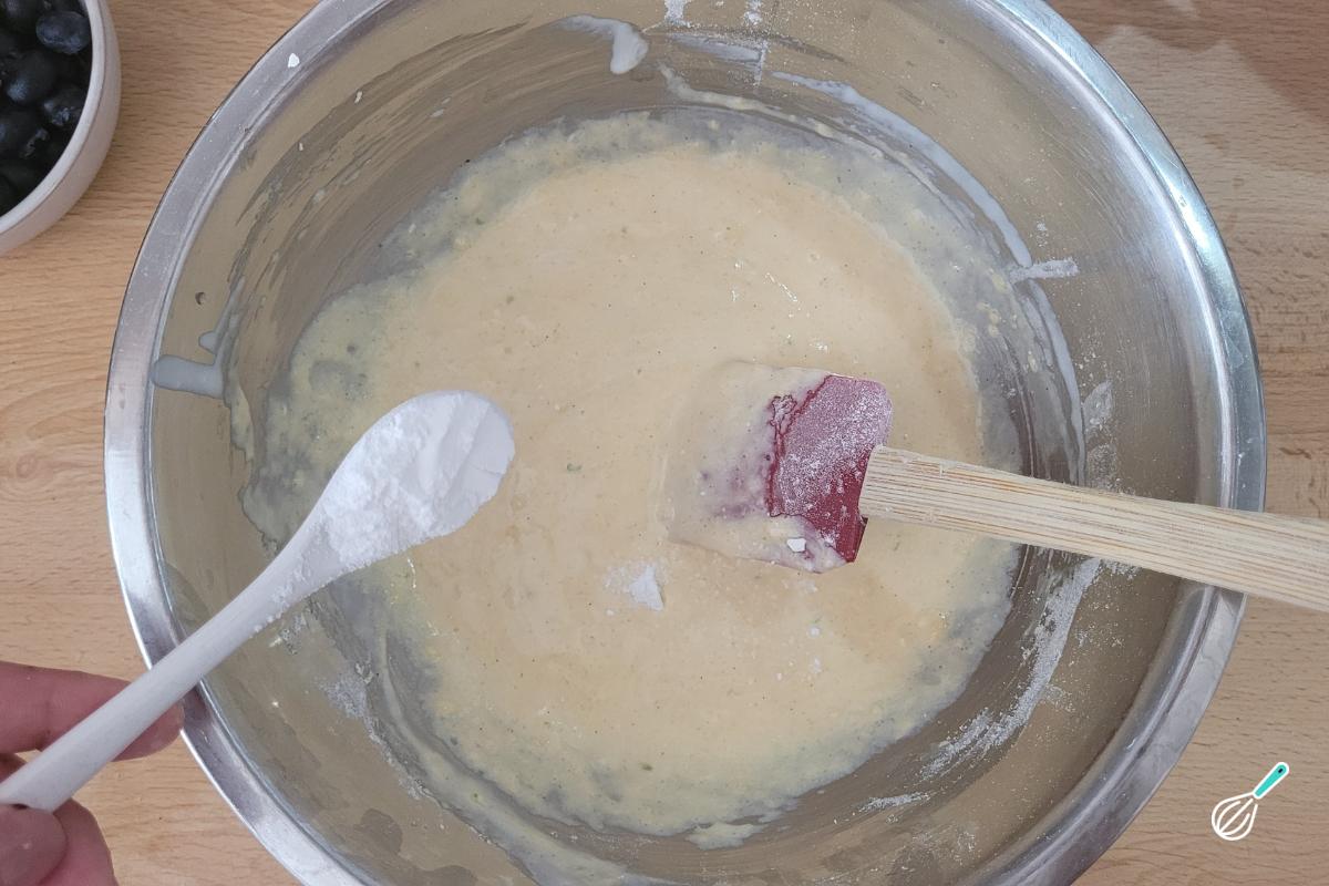 Fazer dessa forma deixa os bolinhos com uma textura melhor e as bluberries também aparecem mais na superfície. Da mesma forma, é melhor usar blueberries frescas do que congeladas para evitar que soltem muita água na massa.