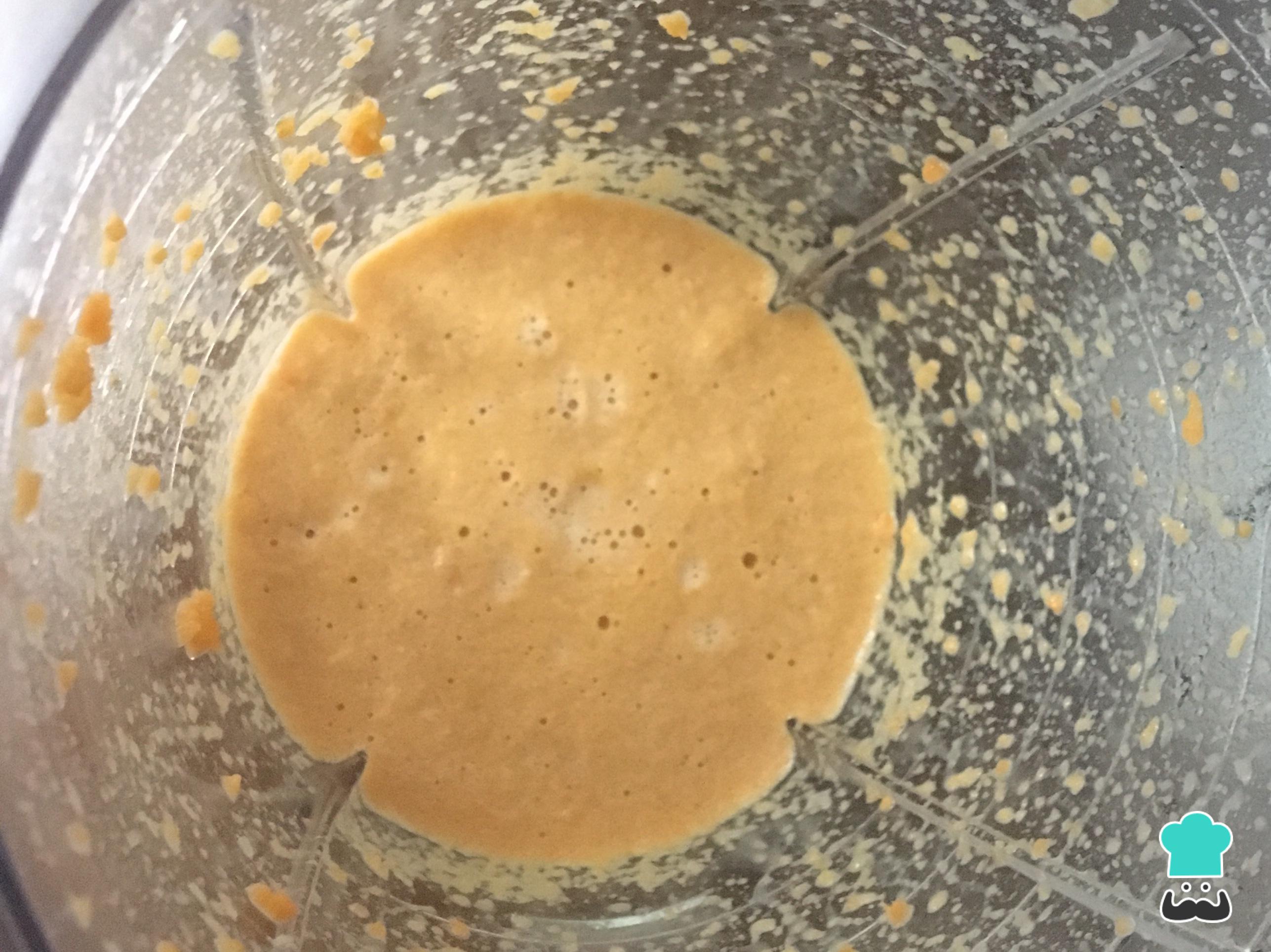 Bata no liquidificador a cenoura, com os ovos e o óleo de coco até obter um creme liso.