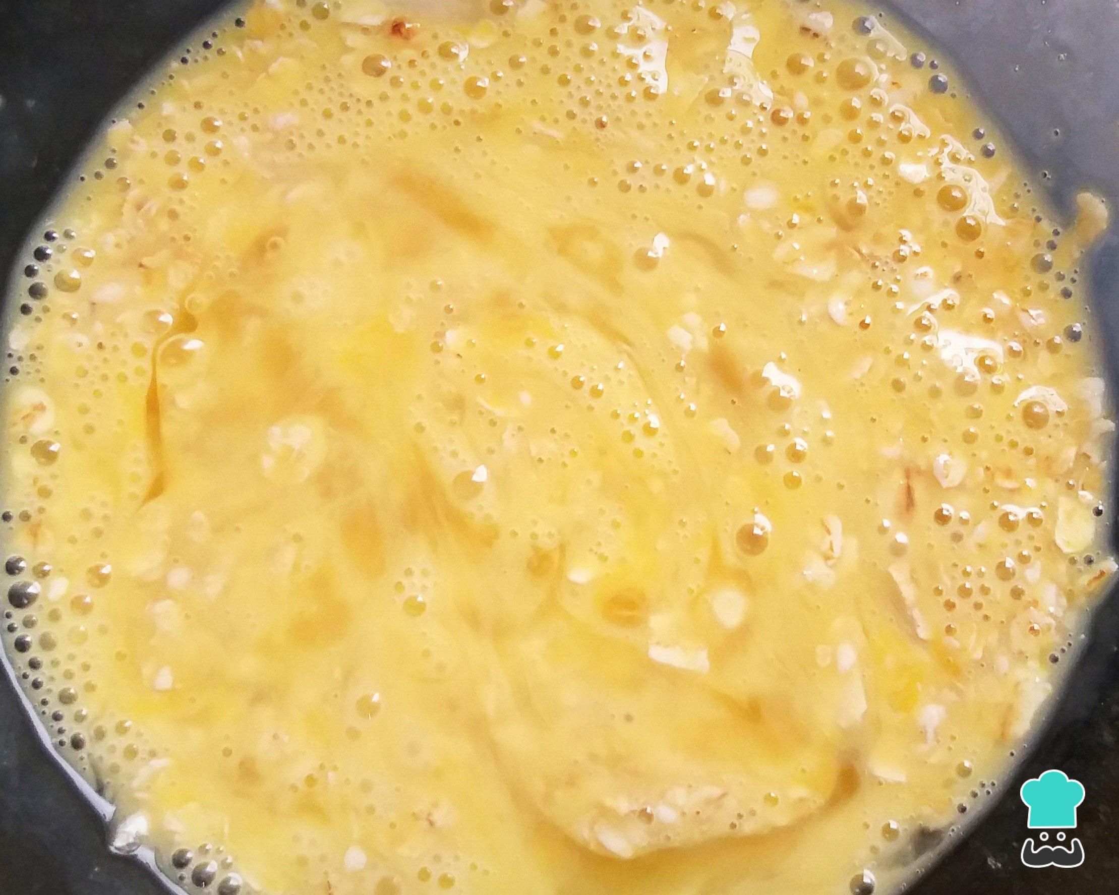 Em uma vasilha bata ligeiramente os ovos, a aveia, o sal e o fermento. Reserve.