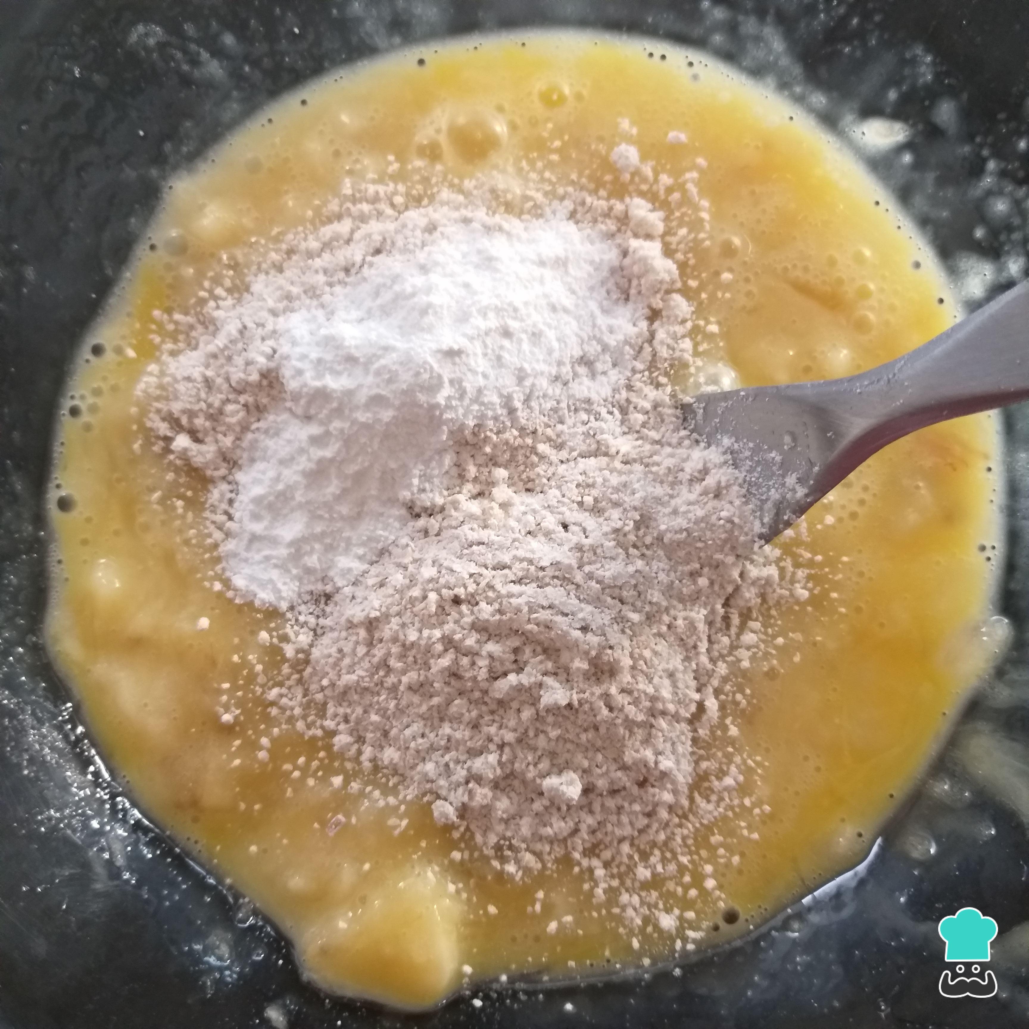 Coloque a farinha de aveia e o fermento e mexa delicadamente.